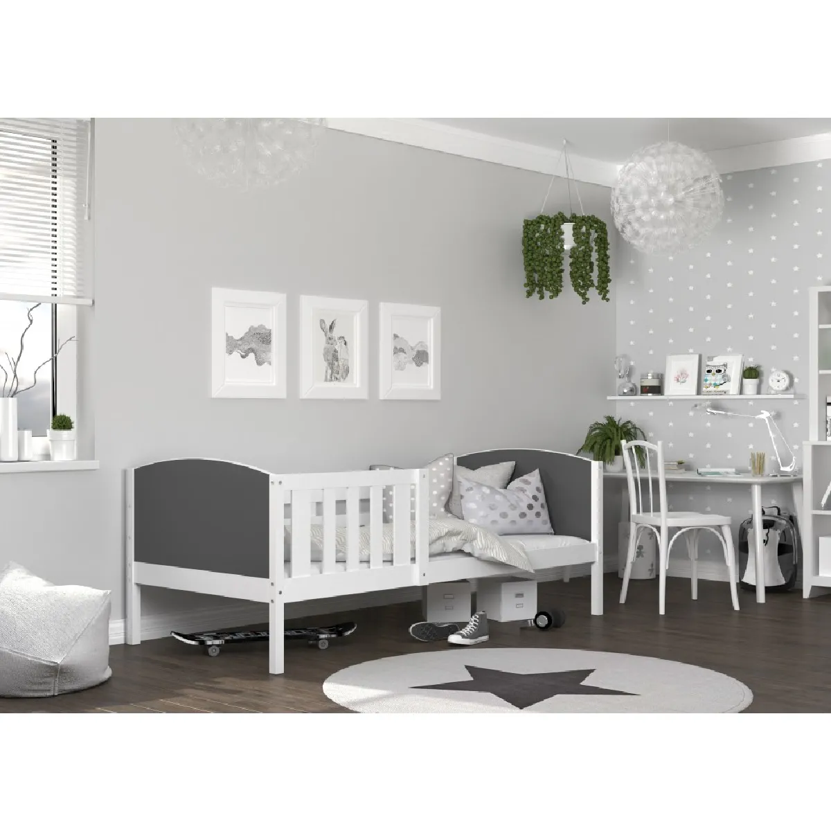 Kids Literie Lit Enfant Tom 90x190 Blanc - gris Livré avec sommiers |