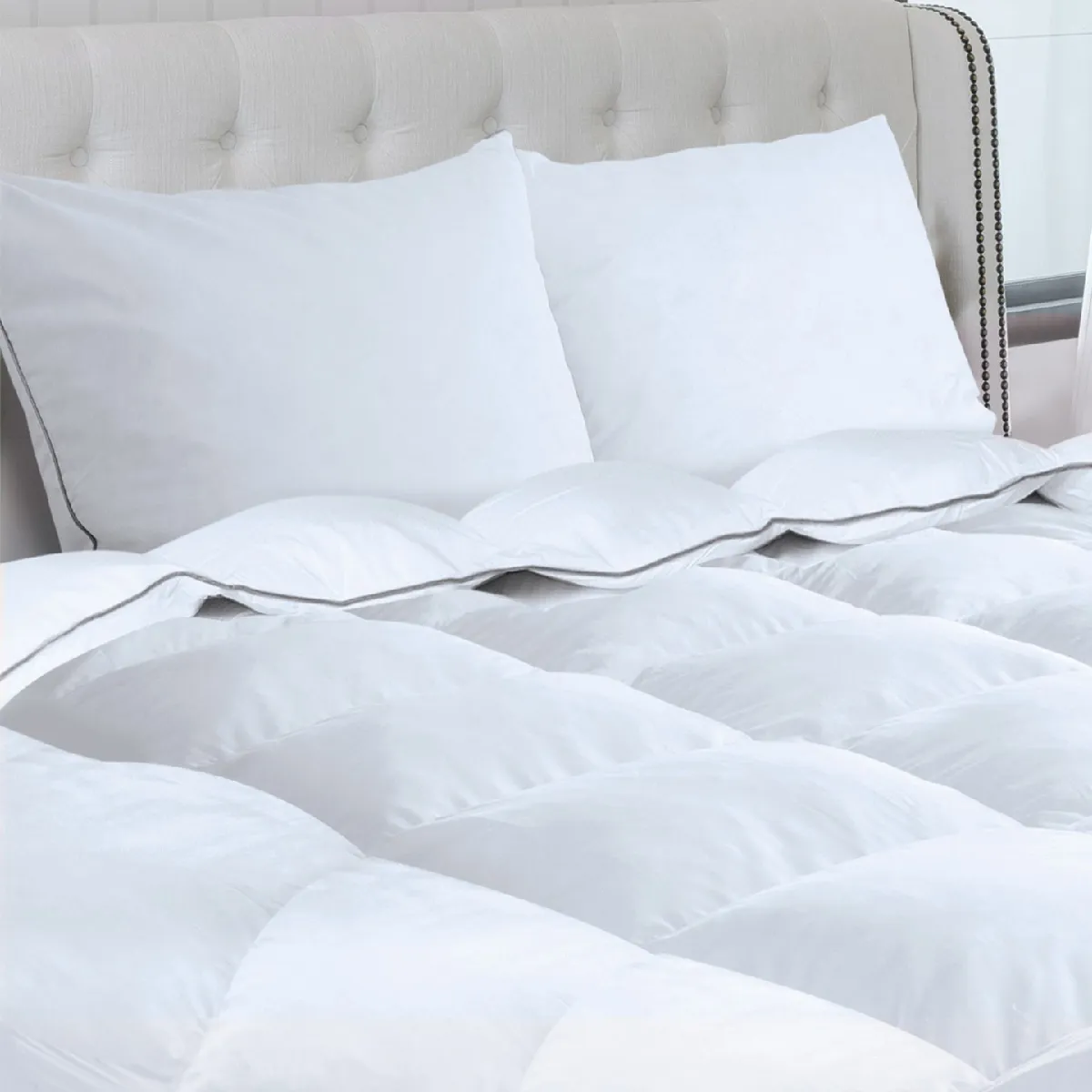 Couette et oreillers en plume d'oie - Anti-acarien - Respirant - Assortiment oreillers inclus