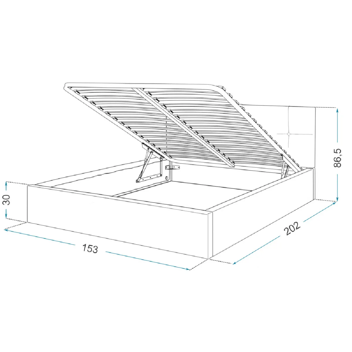 Les dimensions du lit : 153 x 202 x 86 cm