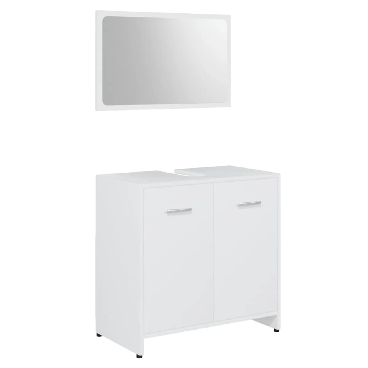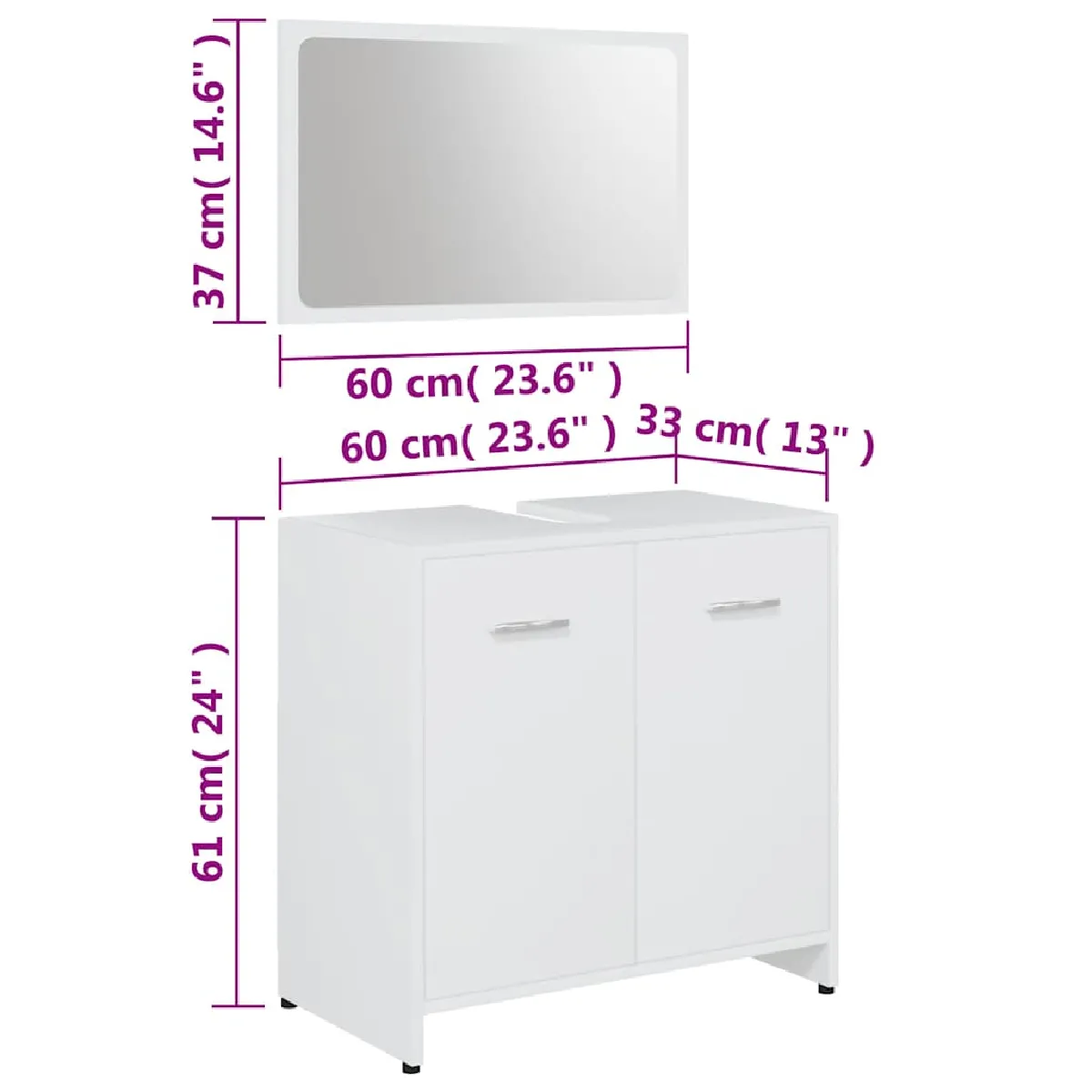 L'ensemble de meubles, comprenant un miroir et une armoire, est fabriqué en bois d'ingénierie durable et stable. Cette armoire chic comprend 1 compartiment et 2 portes, offrant un grand espace de rangement pour ranger des articles dans votre salle de bain. Il y a une poignée sur chaque porte pour une meilleure ouverture et fermeture. Le miroir ajoute également une excellente apparence à votre décoration intérieure. De plus, cet ensemble de salle de bain est facile à nettoyer avec un chiffon humide.