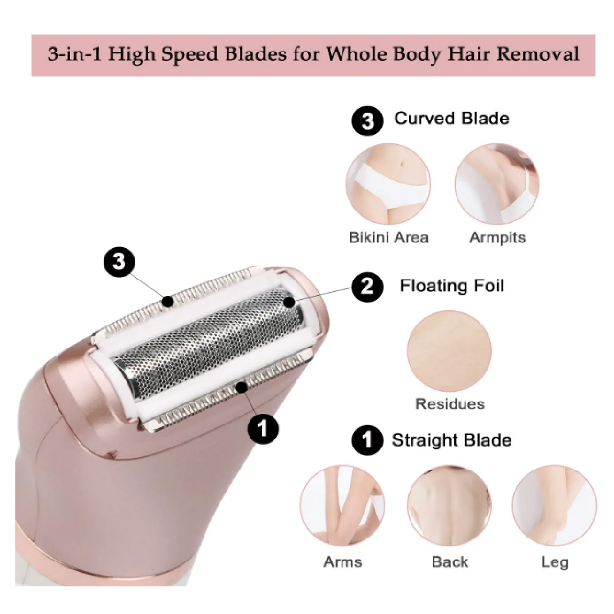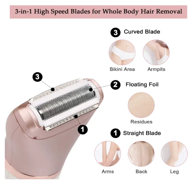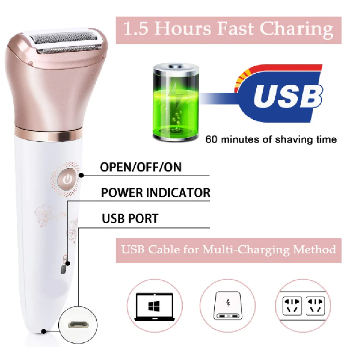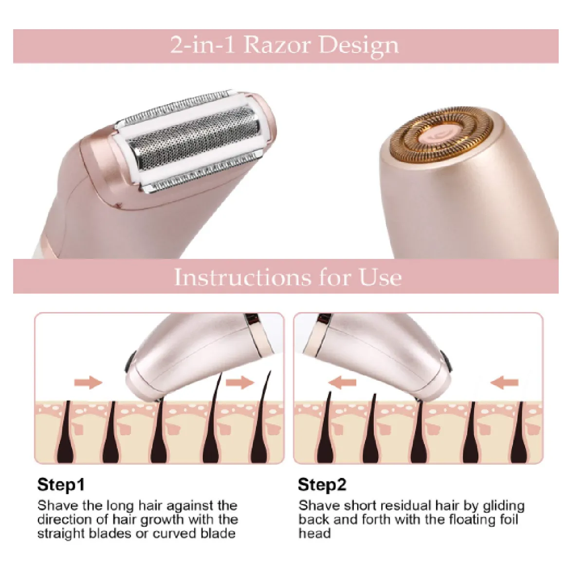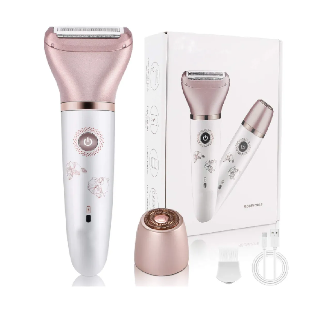 Rasoir électrique femme 2 en 1 - Étanche - Rasage à sec ou humide - Recharge USB - 2 têtes - Lames hypoallergéniques - Sans fil