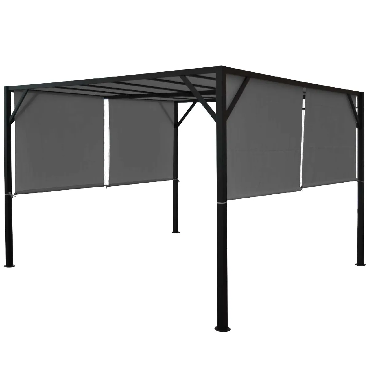 Pergola pavillon de jardin - Acier stable - Toit gris 3x3m - Drainage intégré
