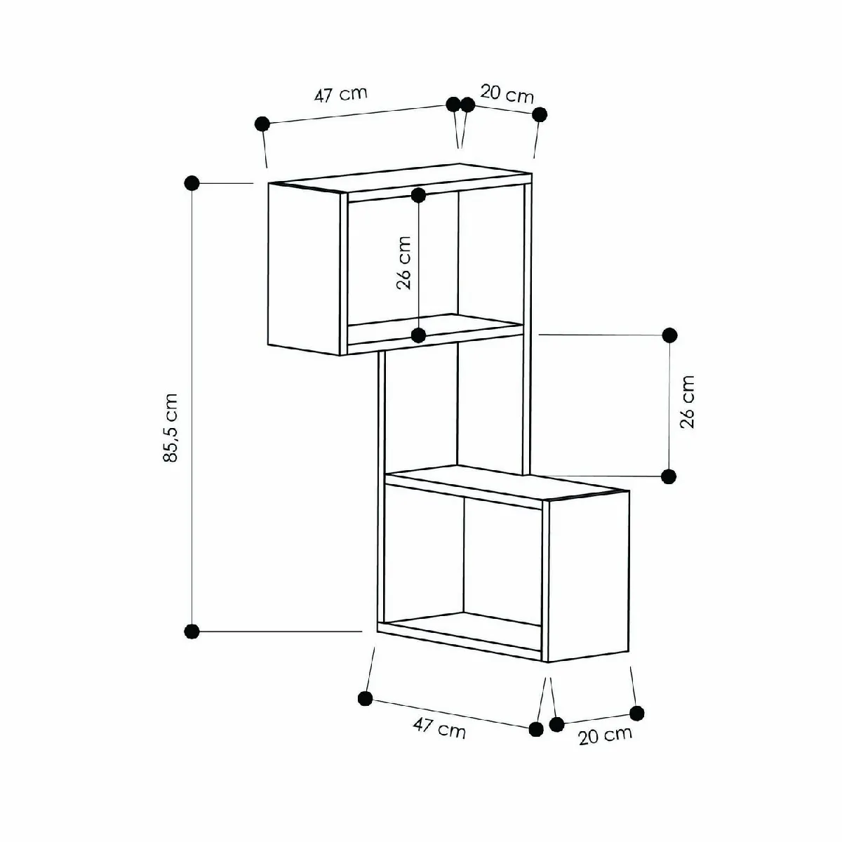 Commentaire vendeur : Avec une conception atypique, cette étagère murale d'angle permettra à votre intérieur de se démarquer.FICHE TECHNIQUE- Etagère murale en panneaux mélaminés de 18mm- Couleur : BlancCARACTERISTIQUES TECHNIQUES- Dimensions : 47 x 85,5 x 20 cm- Poids : 7,8 kg