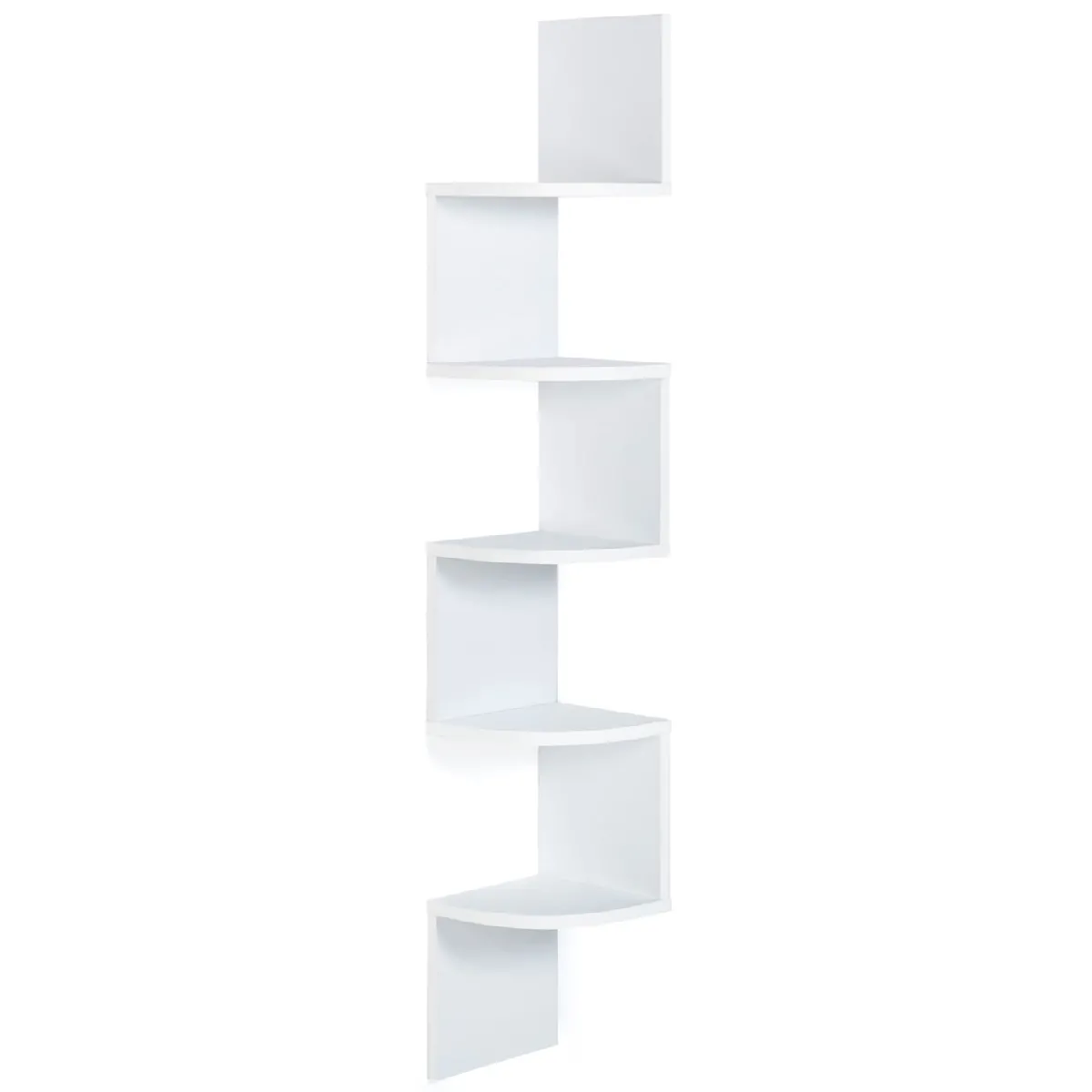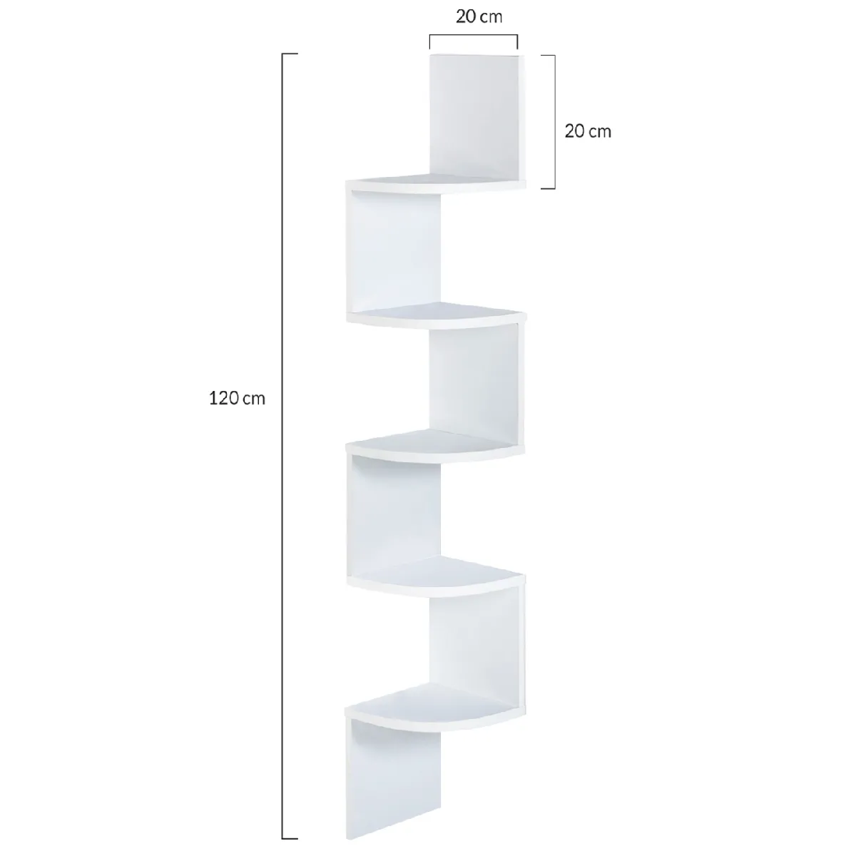 Étagère murale d'angle - 5 niveaux - Blanche - Kit de fixation inclus