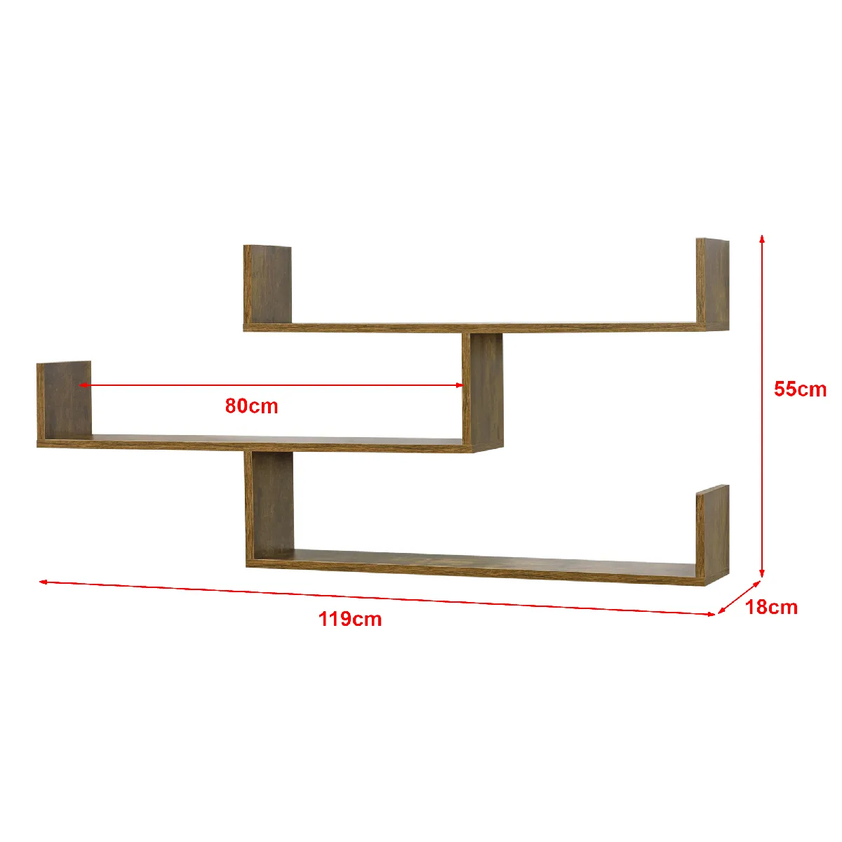 L'organisation du quotidien gagne en simplicité grâce à trois surfaces de rangement bien réparties qui exploitent la hauteur du mur sans empiéter sur le sol. Le format de 119 x 18 x 55 cm s'intègre aisément dans un salon, une entrée ou un bureau, tout en offrant un espace fonctionnel pour livres, objets et accessoires. La structure en panneau de particules mélaminé facilite le nettoyage et la tenue dans le temps, avec une capacité de charge jusqu'à 14 kg pour accueillir des usages courants en toute stabilité.