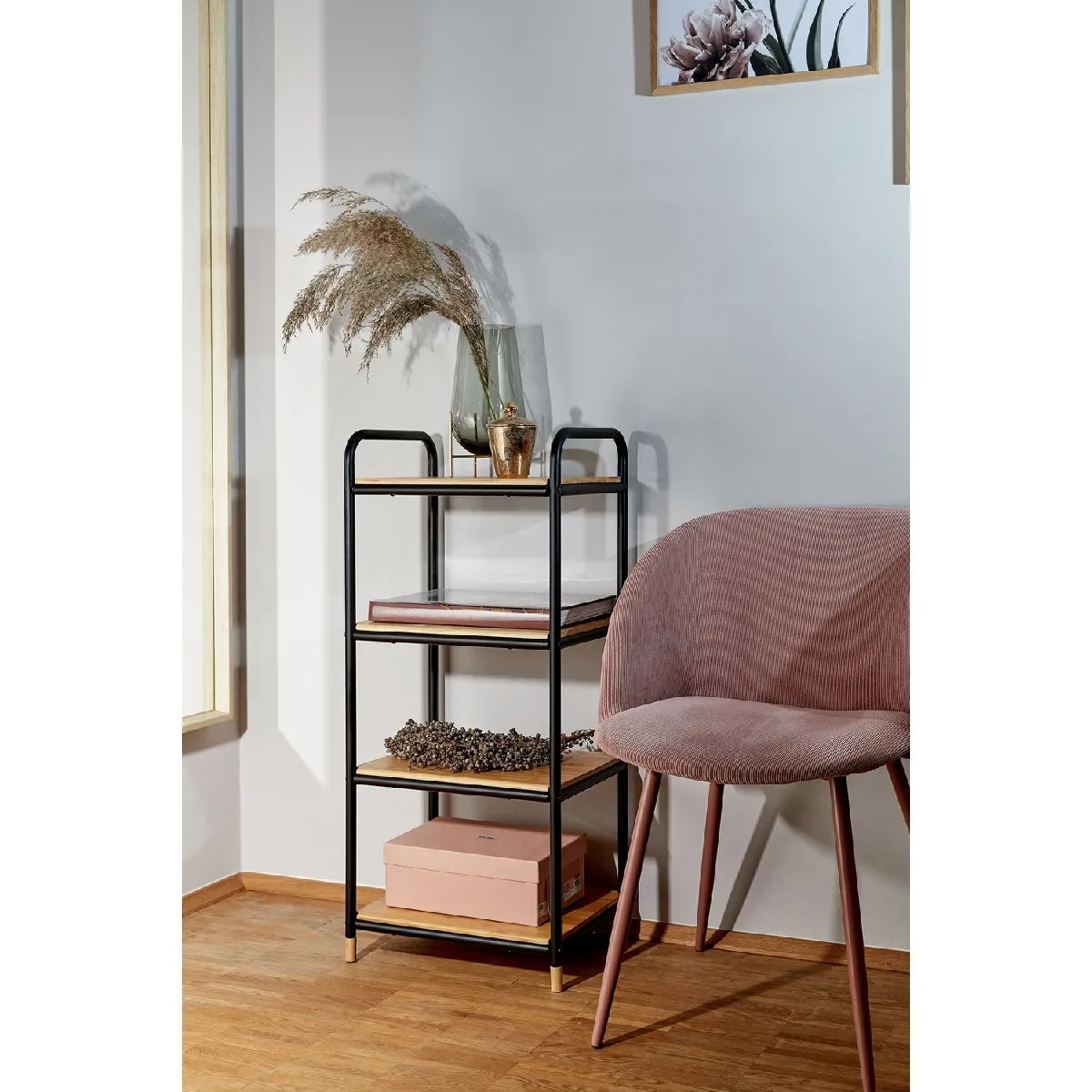 - Idéale pour exposer vos décorations, vos plantes ou vos livres sur ses quatre étagères.
