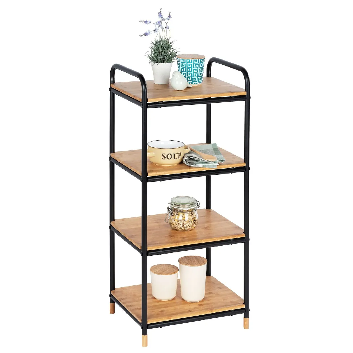WENKO Etagère 4 niveaux en Bambou et Métal - Noir et Beige |