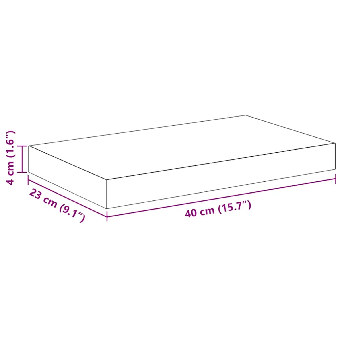 - Dimensions : 40 x 23 x 3,8 cm (L x l x H)