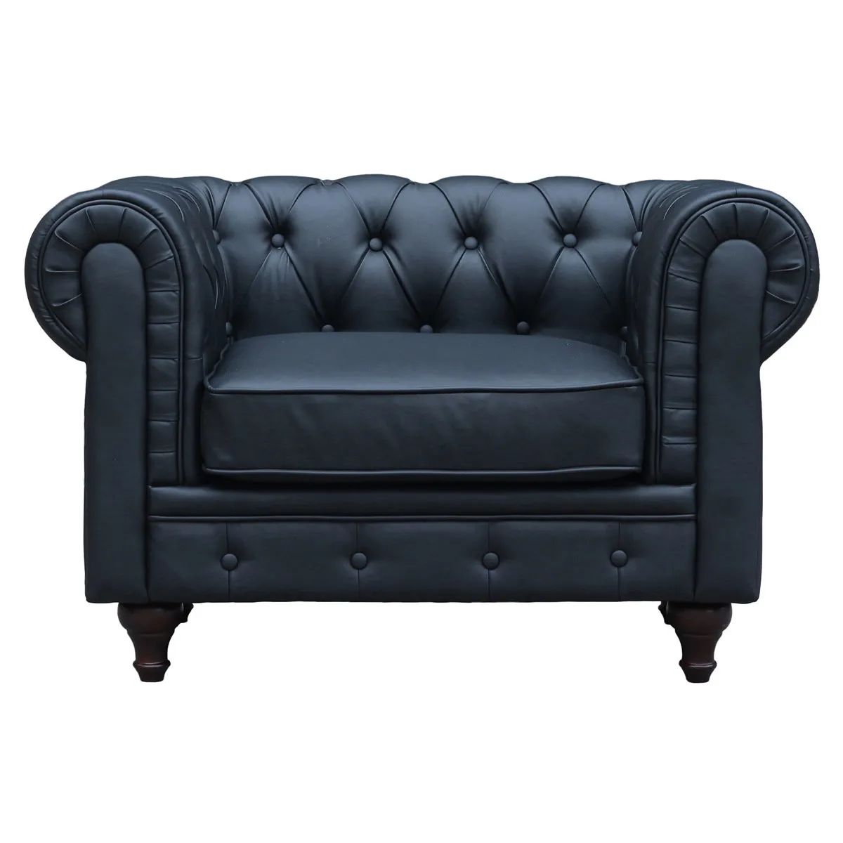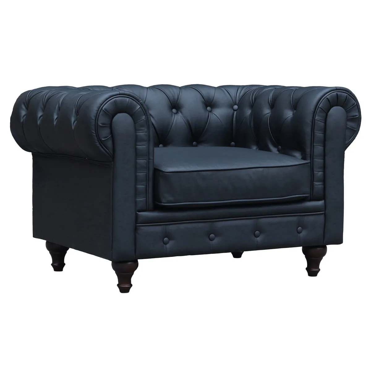 Fauteuil Chesterfield - Capitonnage PU - Pieds bois d'eucalyptus