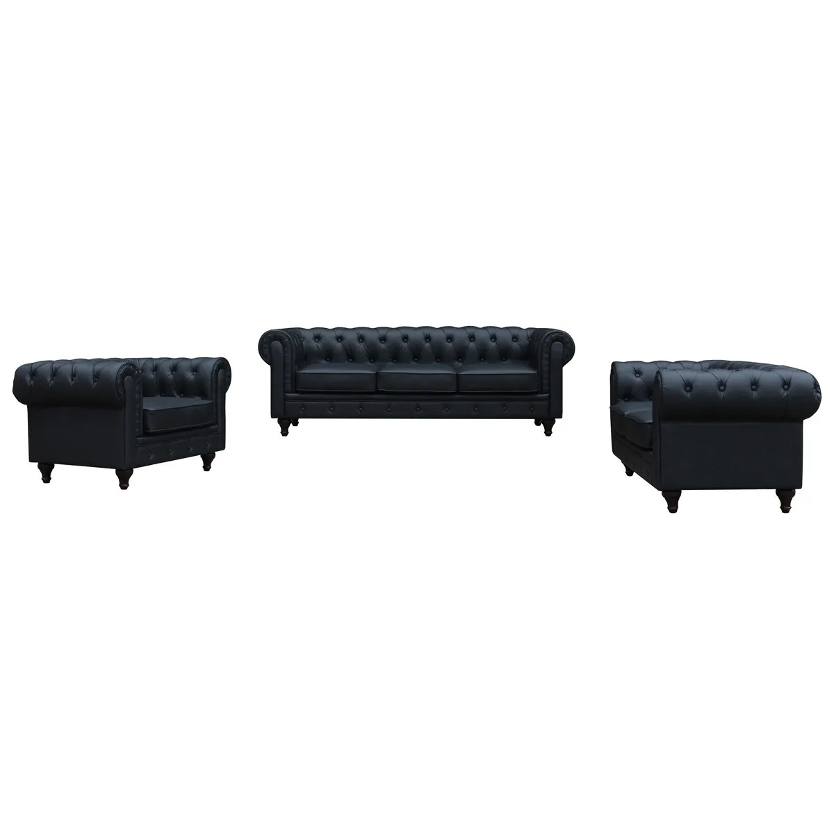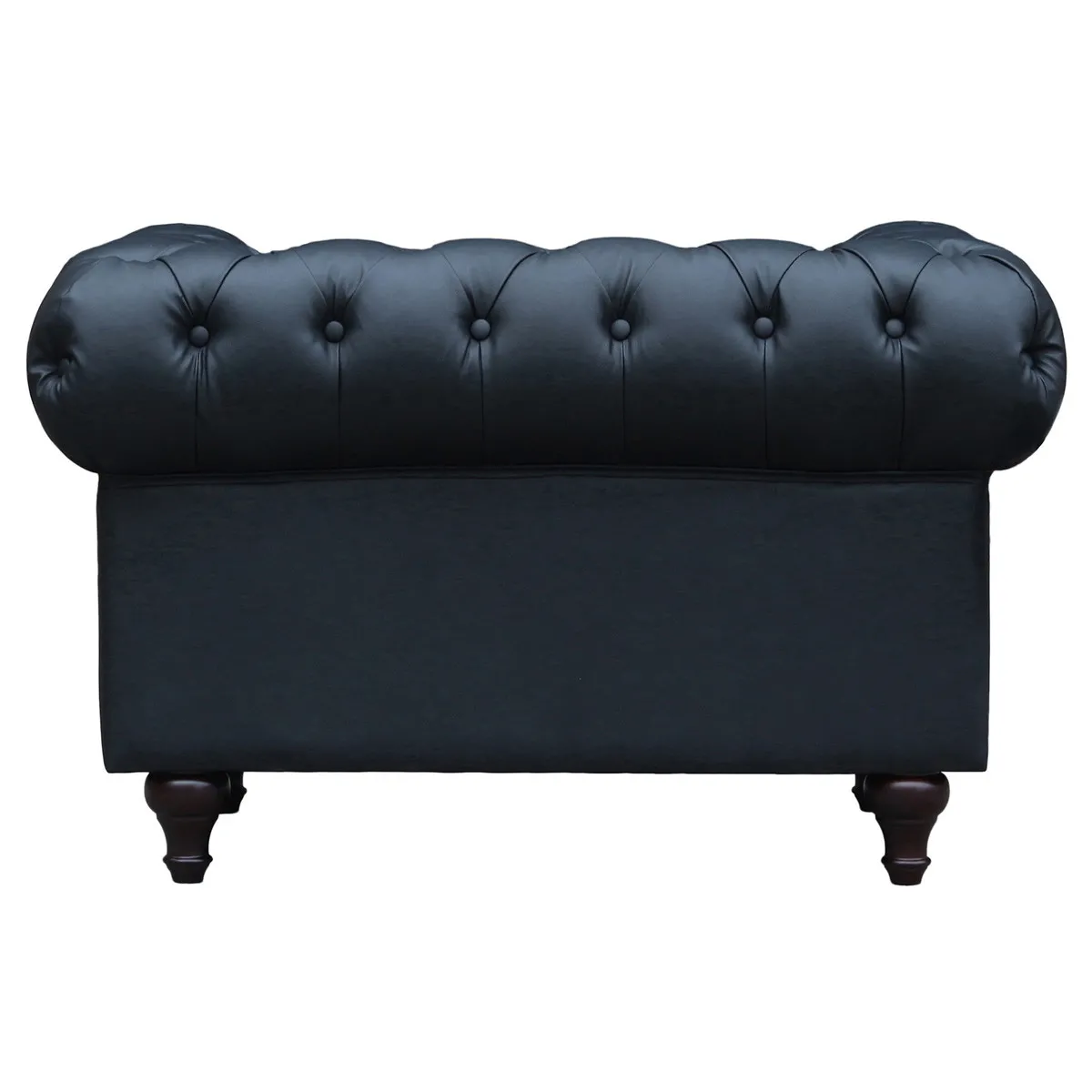 Commentaire vendeur : Fauteuil "Aliza" Chesterfield - Noir - Dimensions : 111 x 82 x 70 cm - Revêtement en PU capitonné - Design British - Pieds en bois