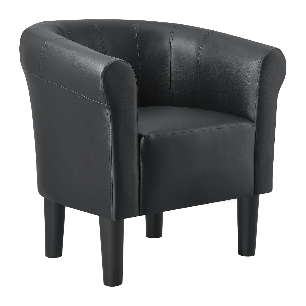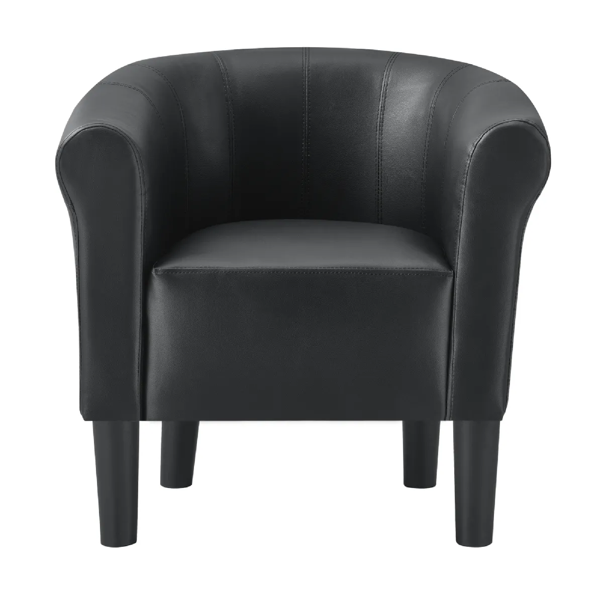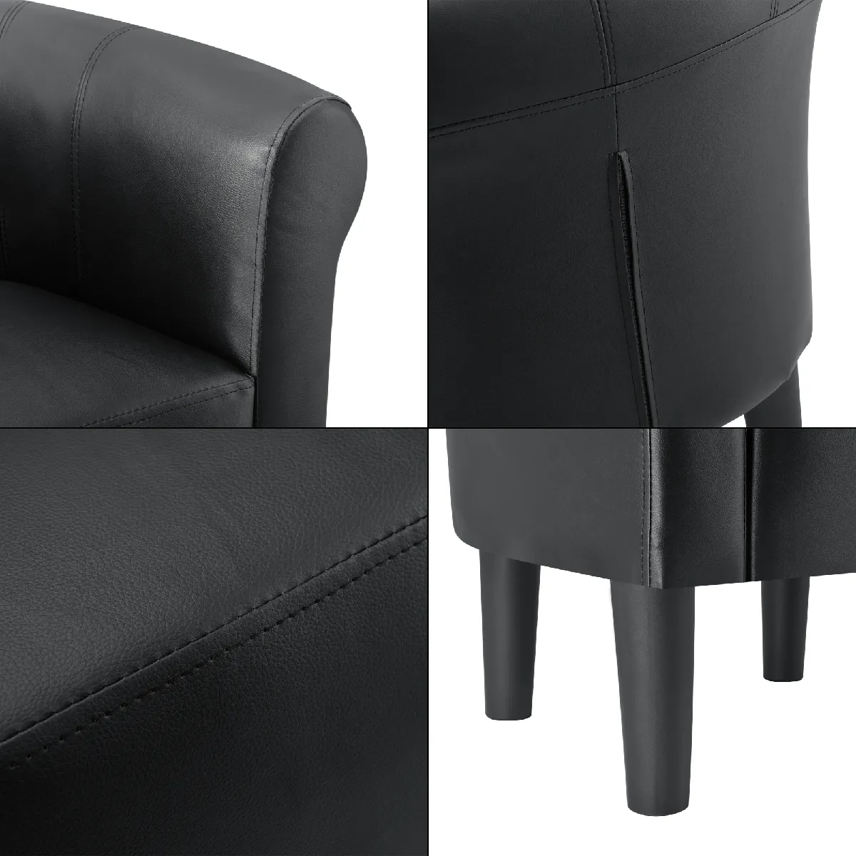 Le revêtement 100 % similicuir offre une surface facile à nettoyer et résistante aux usages courants, idéale pour conserver un aspect soigné au quotidien. Le dossier et les accoudoirs assurent un maintien agréable lors des pauses, tandis que l'assise de 45 x 40 cm permet de s'installer avec aisance. Les lignes minimalistes valorisent une construction esthétique et design qui se combine naturellement avec un intérieur contemporain ou épuré.