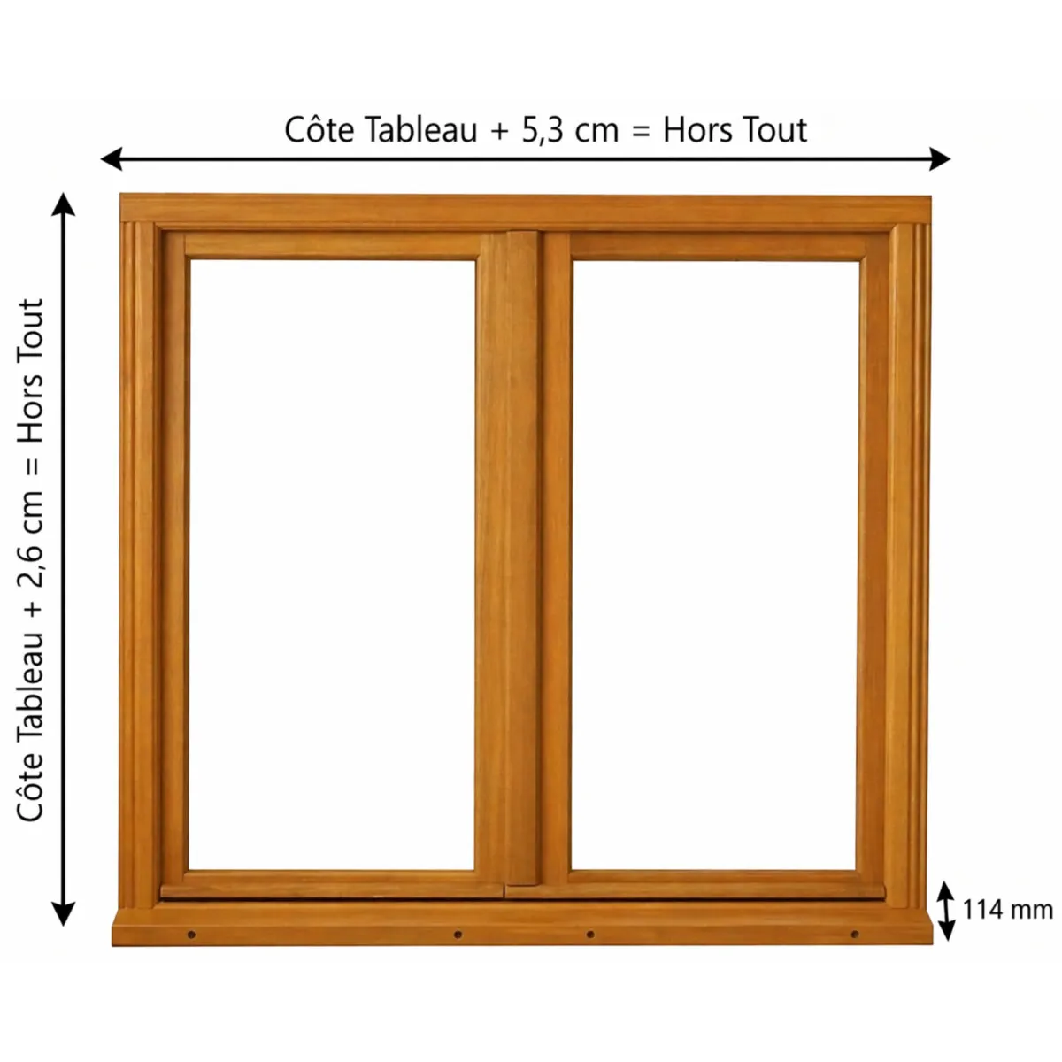 Fenetre bois 2 vantaux en Meranti a peindre ou a teinter Performance thermique, durabilite et personnalisation La fenetre bois 2 vantaux en meranti est une solution haut de gamme, ideale pour allier excellentes performances thermiques, robustesse et esthetique naturelle. Realisee en bois exotique meranti, reconnu pour sa stabilite et sa resistance, elle convient parfaitement aux projets de construction neuve comme de renovation. Les dimensions cote tableau sont de H 135 x L 90 cm, pour une dimension hors tout de H 137,6 x L 95,3 cm. Le dormant et l'ouvrant de 46 mm d'epaisseur assurent solidite, longevite et confort d'utilisation. Cette fenetre est equipee d'un vitrage isolant 4/16/4 a faible emissivite avec gaz argon, garantissant une tres bonne isolation thermique avec un coefficient Uw de 1,5 W/m².K. Elle contribue ainsi a ameliorer le confort interieur et a reduire les consommations energetiques. (Poignee non fournis.) Les menuiseries reçoivent en usine un traitement FIH, assurant une premiere protection du bois. Afin de garantir une protection optimale et durable, deux couches de finition (peinture ou lasure) doivent imperativement etre appliquees apres la pose. Un entretien regulier est ensuite recommande pour preserver l'aspect et les performances du produit. Livree prete a etre peinte ou teintee, cette fenetre peut etre personnalisee dans la couleur de votre choix afin de s'harmoniser parfaitement avec la façade et le style de votre maison.