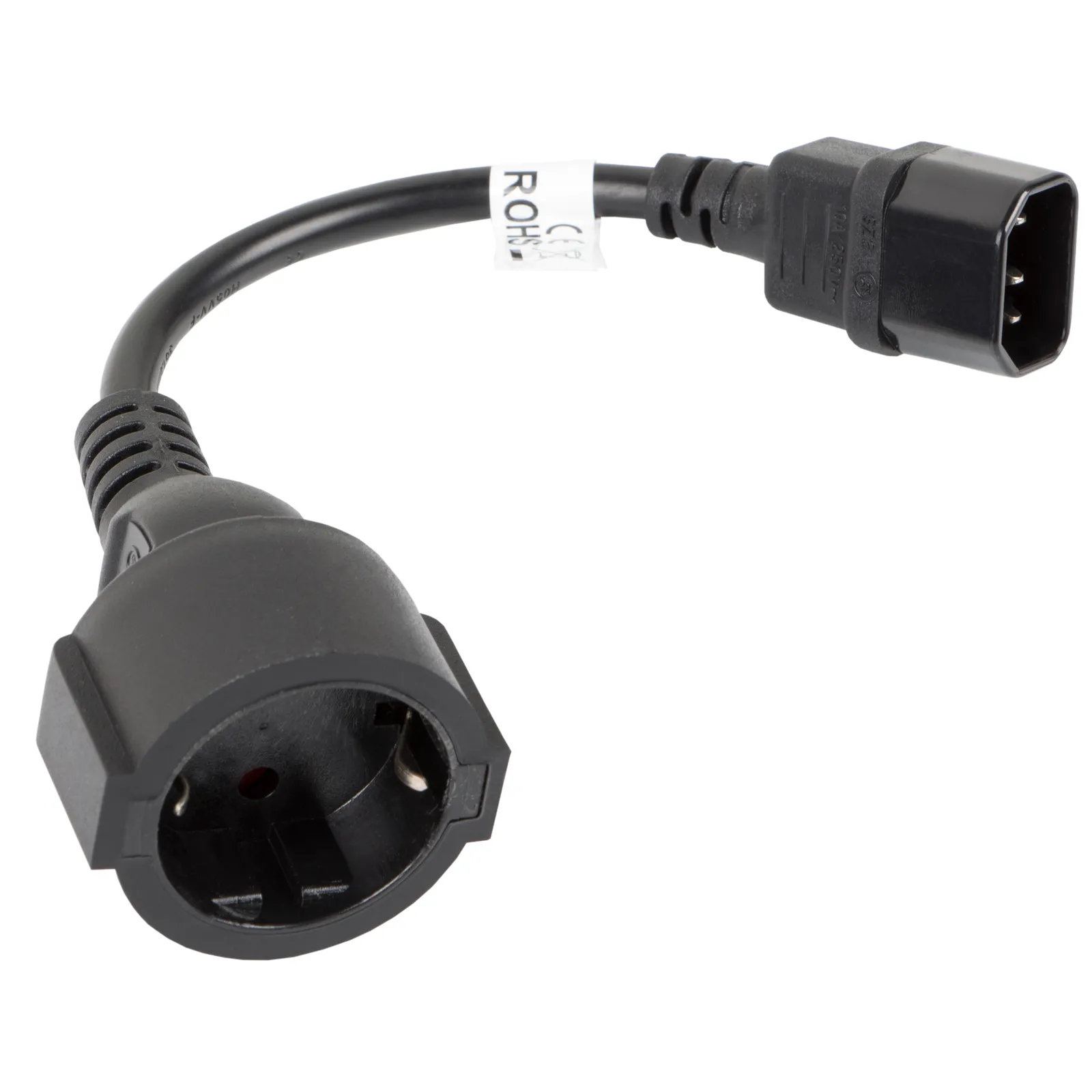 Adaptateur secteur Schuko vers IEC C14 - C14 mâle vers Schuko femelle - 250 V - 2 conducteurs - Gaine et isolation PVC - Compatible PC, serveurs et alimentations - Noir