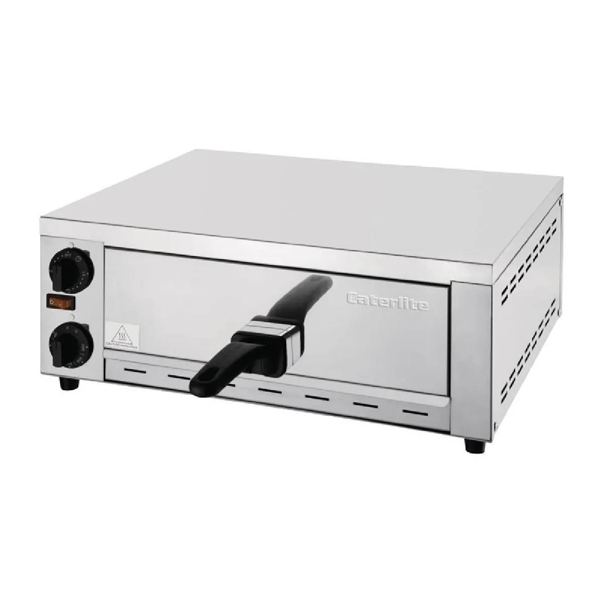 Four à Pizza Electrique 1 chambre Compact - 1 Pizza - CaterliteCe four à pizza permet de faire cuire pizzas fraîches ou surgelées de 30 cm rapidement grâce à ses résistances puissantes en haut et en bas et à ses commandes simples. L'isolation double paroi assure efficacité énergétique et cuisson rapide avec une minuterie de 15 minutes. La construction en acier inoxydable est facile à nettoyer. Modèle compacte portable idéal pour les camions de restauration mobile et petits établissements de restauration. Marque: CaterliteDimensions: 188(H) x 380(L) x 486(P) mmPlage de Température: 60 °C à 300 °CAlimentation: 220-240VPoids: 8,2 kgPrise: ouiConstruction en acier inoxydableCorps isolé double paroiCuisson rapide avec minuterie de 15 minutesVoyant d'alimentation / chauffeContient une pizza de 30cm maxRésistances en haut et en bas1,13 kW. 5A.