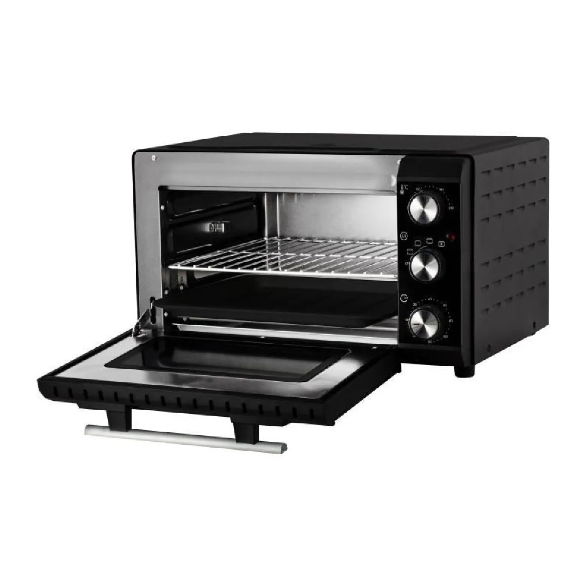 Avec 20 litres, l'espace intérieur accueille des plats de taille moyenne, pains, pizzas et portions familiales selon la disposition des grilles. La convection optimise l'air chaud pour des résultats plus réguliers, notamment lors de cuissons simultanées sur un niveau. Le signal sonore de fin et l'arrêt automatique apportent un repère fiable pour sortir les préparations au bon moment. Son design compact et noir s'intègre aisément dans la cuisine, et la structure en inox intérieur favorise une utilisation durable. L'appareil propose une palette de fonctions cohérente pour une préparation simple et efficace.