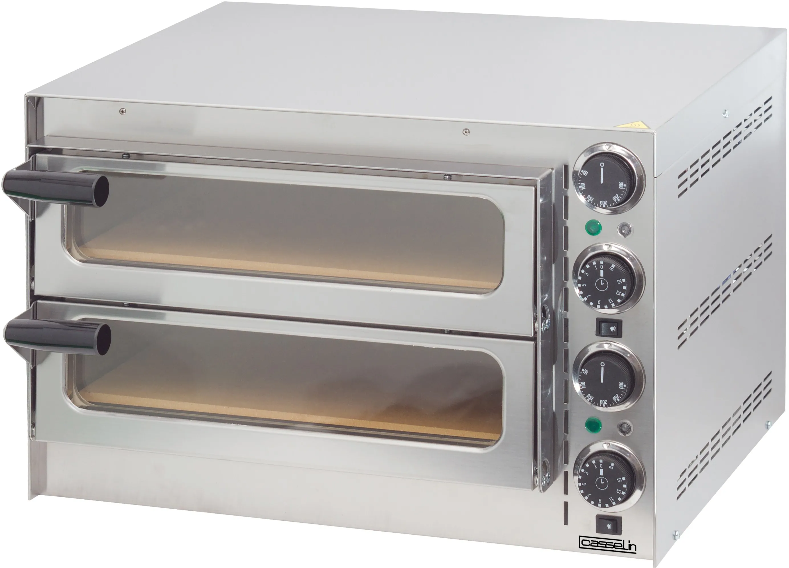 Four à pizza électrique double chambre - pierre réfractaire - chaleur haut/bas - minuterie 15 min - 230 V - inox