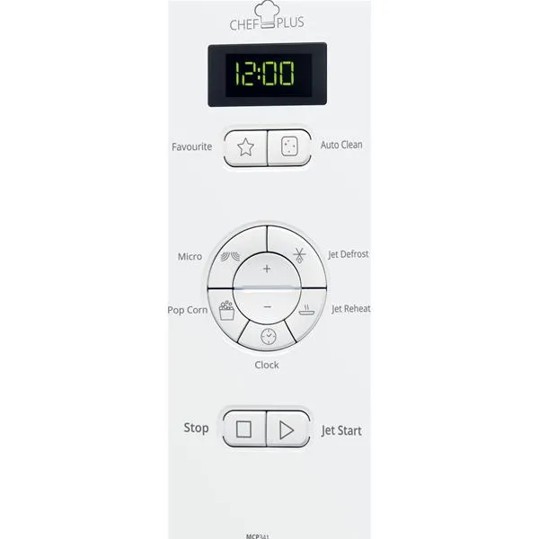 Pour les produits surgelés, Jet Defrost gère automatiquement la décongélation afin d'obtenir une texture prête à cuire. Les commandes dédiées, comme Pop Corn pour un encas rapide, simplifient l'usage. La touche Favori mémorise un réglage récurrent et le rappelle d'un geste. La minuterie et l'horloge 24 h facilitent l'organisation, et la protection enfant bloque l'interface. Sans gril ni vapeur, l'appareil se concentre sur l'essentiel : une chauffe rapide, des fonctions directes et des résultats constants.