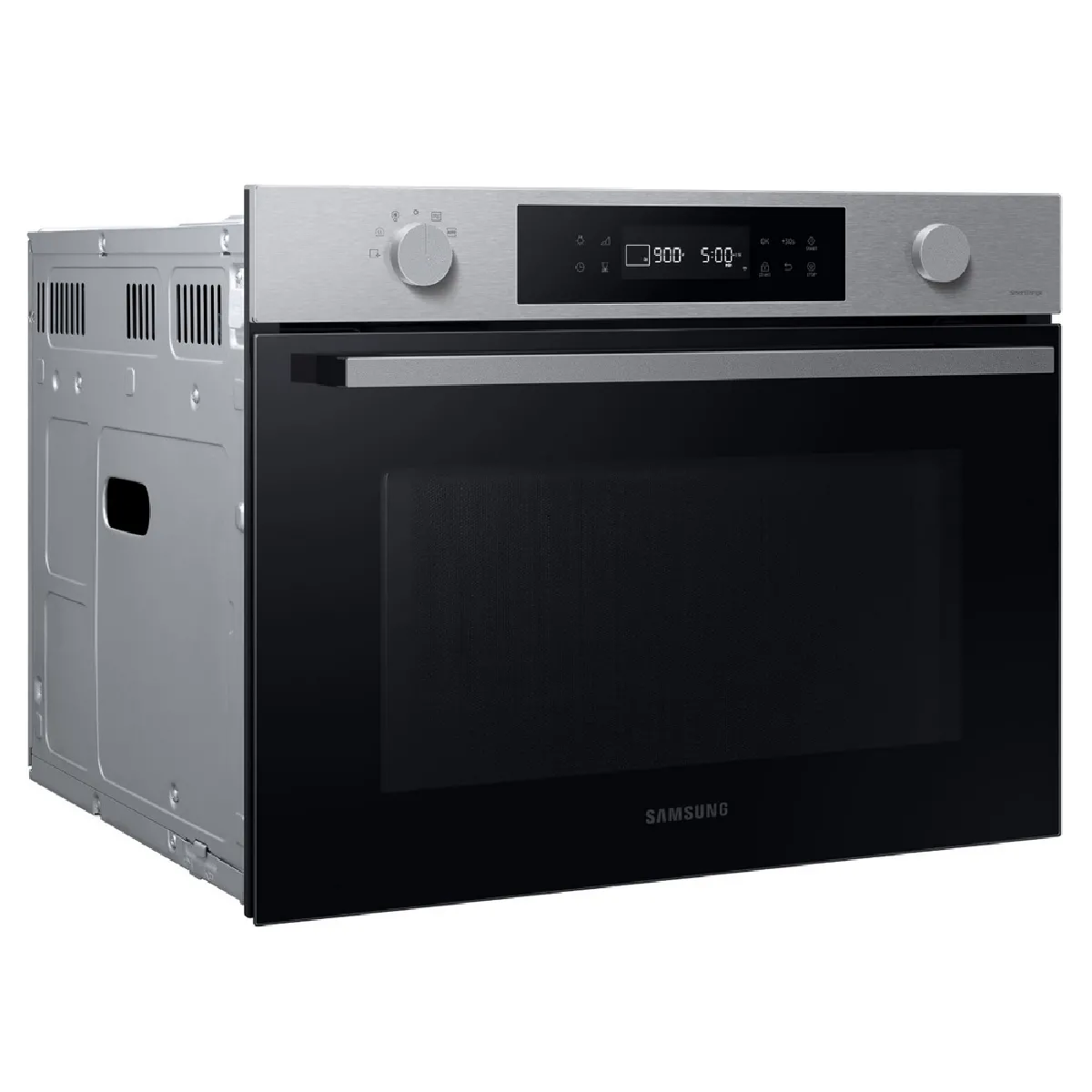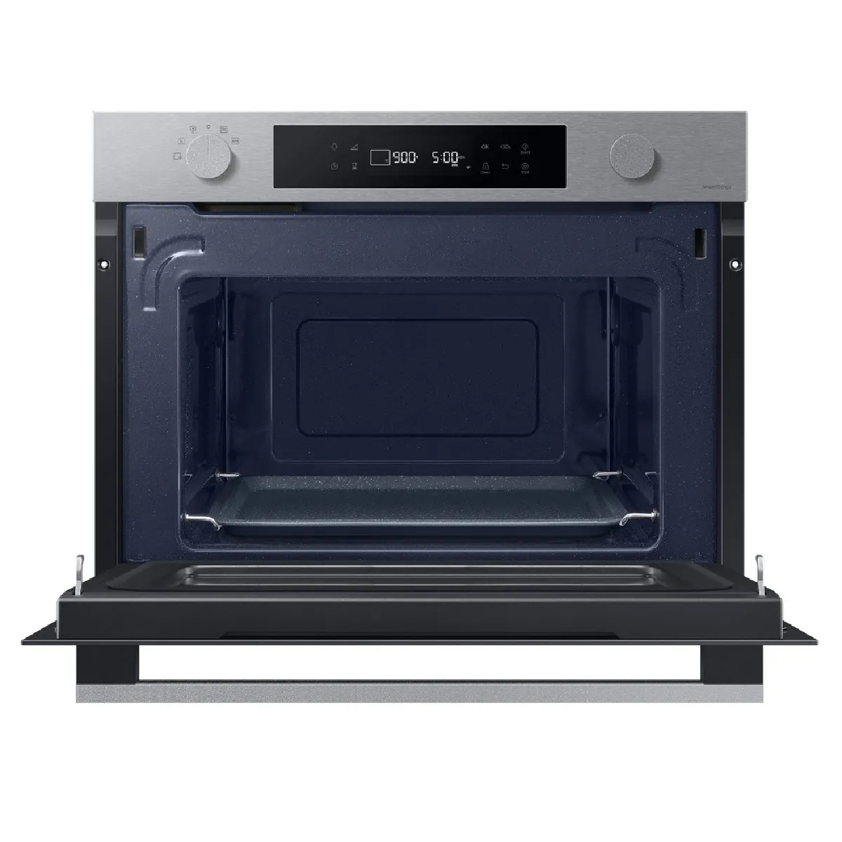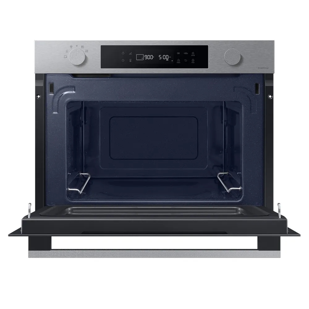 Une cavité de 50 l dans un format encastrable offre assez d'espace pour des plats volumineux et une cuisson homogène. Grâce à la connectivité WiFi via l'application SmartThings, vous surveillez et contrôlez les cuissons à distance, avec accès à des réglages préprogrammés et un préchauffage à la demande. La cavité en céramique émail résiste à l'usure et se nettoie facilement, tandis que l'éclairage halogène améliore la visibilité. Les commandes électroniques avec écran LED et boutons rotatifs simplifient les réglages, et la sécurité enfant renforce la tranquillité d'esprit. Le bandeau Inox s'intègre discrètement dans la cuisine.