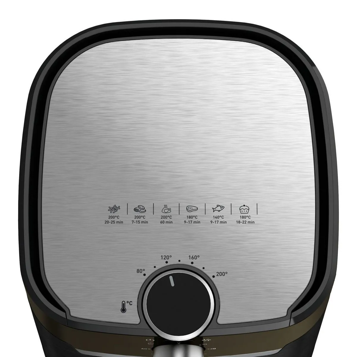 Cette friteuse de type Airfryer réunit une fonction de cuisson à l'air pour des textures croustillantes et un mode gril pour des aliments dorés de manière homogène. Le thermostat réglable de 80 à 200 °C permet d'adapter la chaleur selon les ingrédients, du snack rapide aux pièces plus épaisses. La minuterie intégrée 60 min aide à structurer les temps de cuisson pour éviter les surcuissons et relancer une préparation au bon moment. Avec 1400 W, la chambre de cuisson atteint rapidement la température cible afin de réduire l'attente entre les étapes.