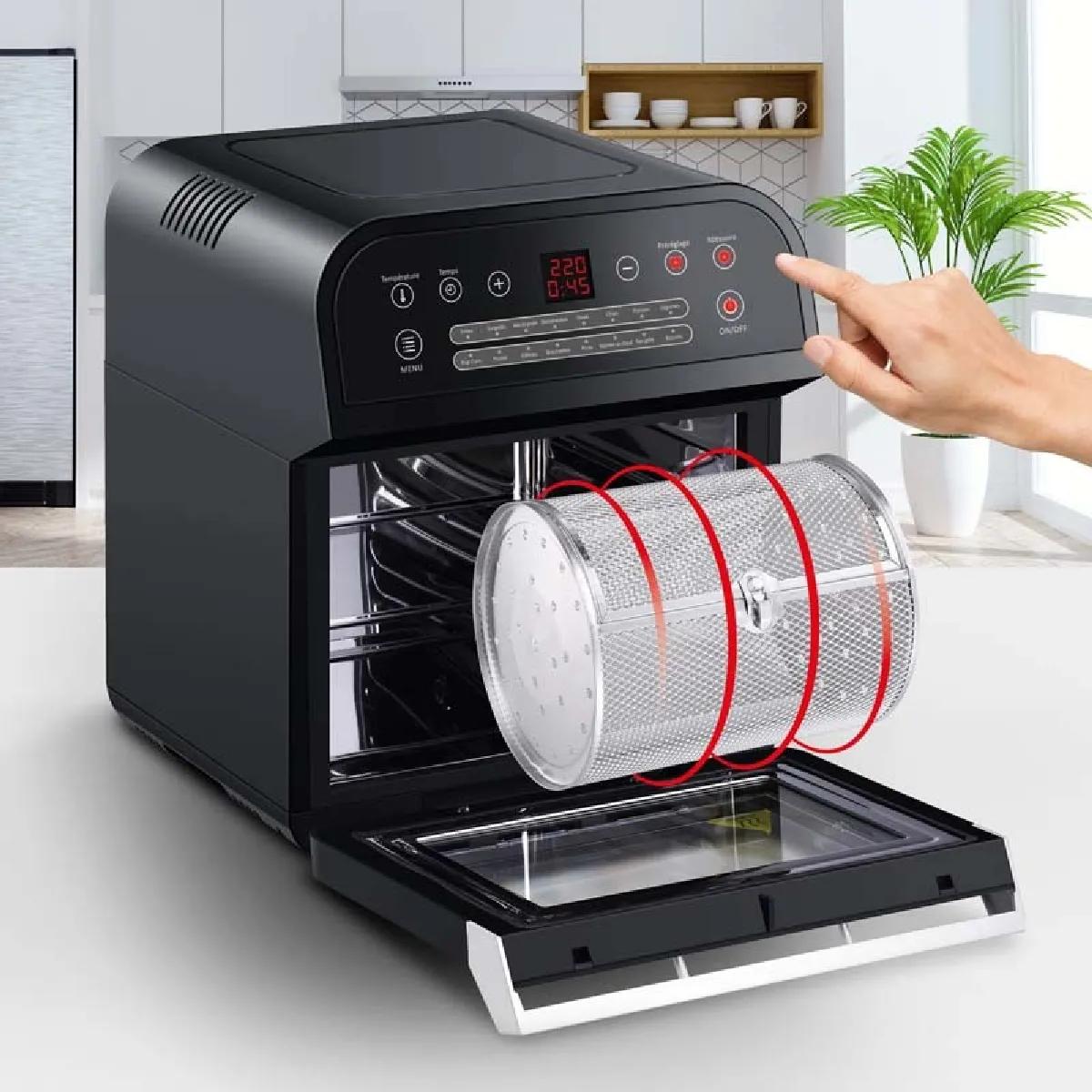 - Grand volume intérieur de 12L permettant de contenir un poulet entier