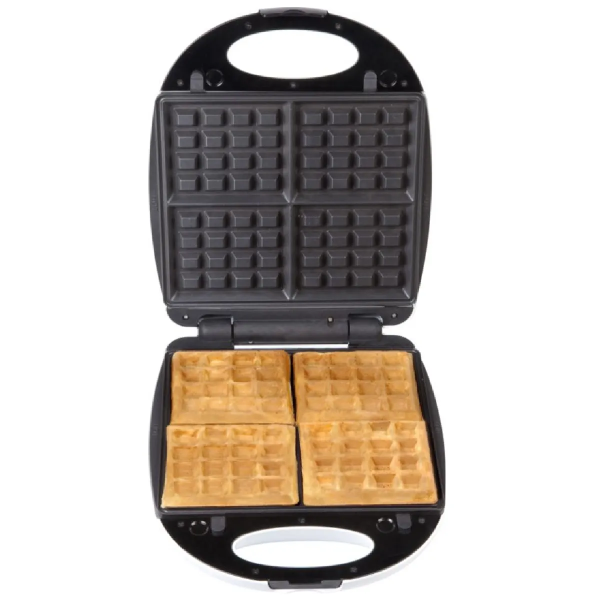Le revêtement anti-adhésif facilite le retrait des gaufres et croques, limitant les résidus et favorisant une cuisson régulière et un nettoyage rapide. Les plaques amovibles passent au lave-vaisselle, pratique pour un usage fréquent. Les deux voyants lumineux, alimentation et prêt à l'emploi, apportent un repère visuel clair pour lancer la cuisson au bon moment et éviter la sous-cuisson. Le boîtier en plastique blanc reste léger, avec un poids de 2,5 kg pour une manipulation aisée et un rangement simple après refroidissement.