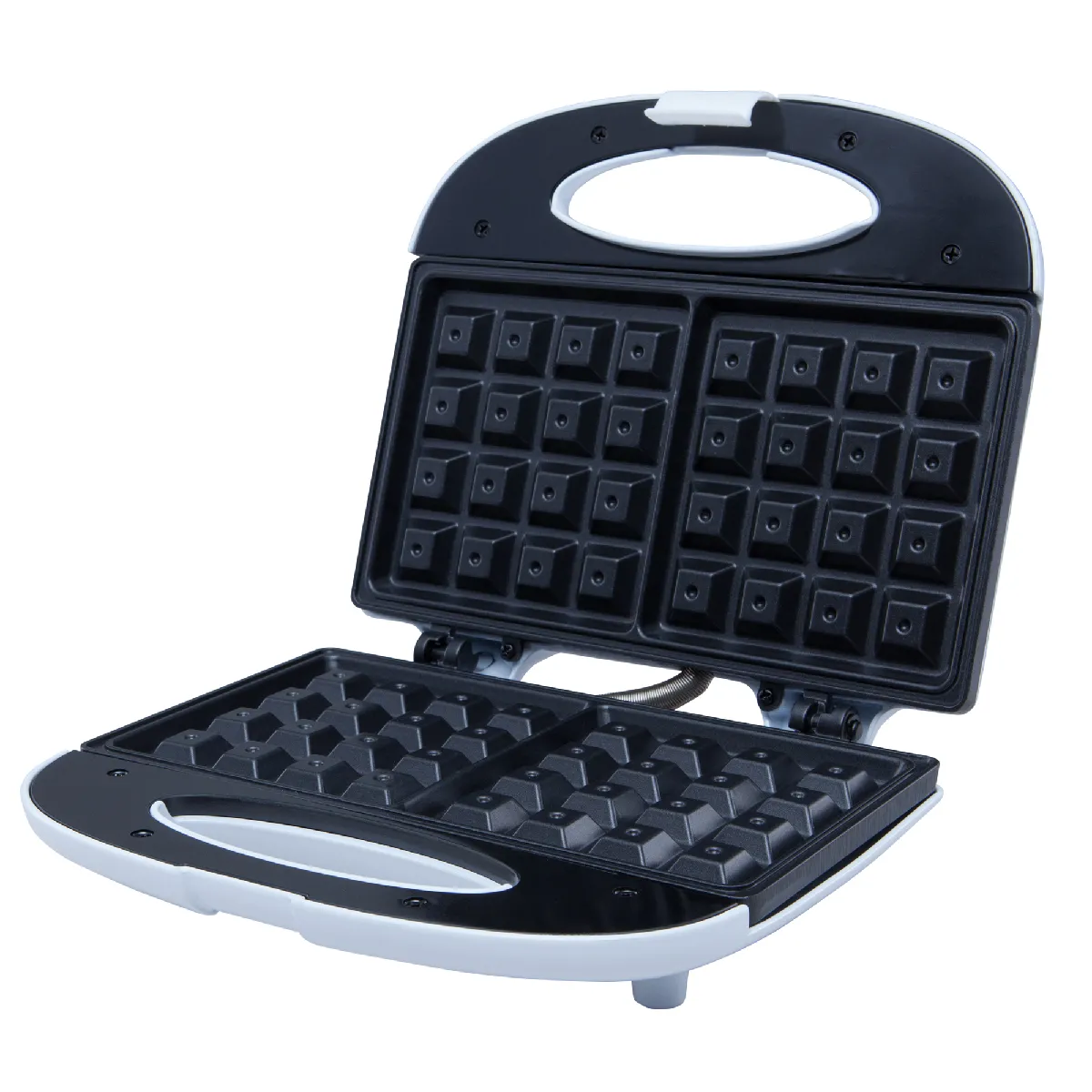 Les plaques possèdent un revêtement antiadhésif conçu pour éviter l'adhérence de la pâte et faciliter l'entretien après utilisation. Cette surface contribue également à un démoulage propre, ce qui préserve les bords et les alvéoles de la gaufre. La fermeture compacte permet un rangement vertical pour gagner de l'espace sur une étagère ou dans un placard. La construction légère, d'environ 1,13 kg, se manipule aisément lors de l'installation sur le plan de travail et du nettoyage.