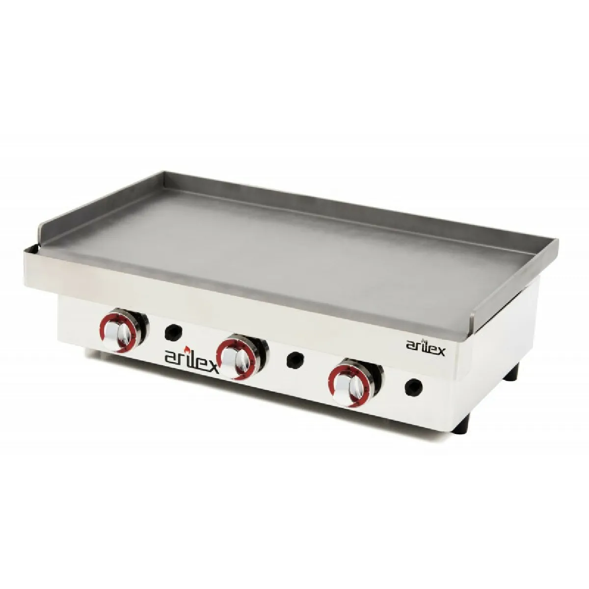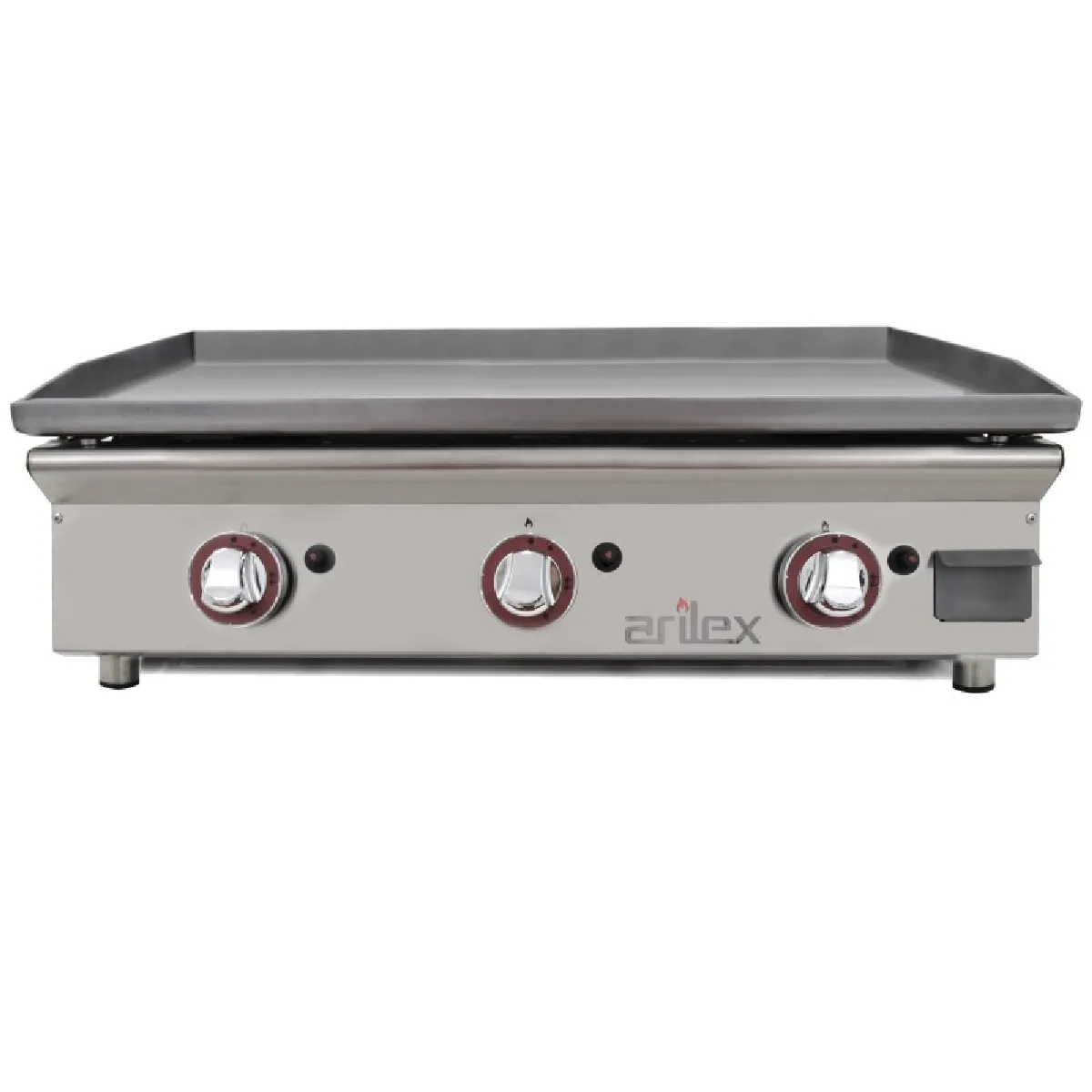 Arilex Plancha à Gaz en Acier Laminé | #html-body [data-pb-style=D2XLF2M]{justify-content:flex-start;display:flex;flex-direction:column;background-position:left top;background-size:cover;background-repeat:no-repeat;background-attachment:scroll}Construite en acier inoxydable satiné avec une épàisseur de 1 mmPlaque de cuisson de 6 mm d'épaisseurPlastron de 36 mm de hauteurFabriqué en acier laminé avec protection antioxydationPlaque de cuisson unique sur le marché, totalement extractible ce qui facilite son transport, son entretient et son nettoyageCommande de bakélite chromée de grande qualité avec marqueur maximum/minimumCollecteur de graisse amovible de grande capacité intégré au coffretAllumage par piézoélectrique (1 par valve à gaz)Pieds hauts réglables grande soliditéBrûleur design ARILEX avec sortie de flamme sur tout le contour assurant une répartition uniforme de chaleur sur toute la plaque. Sans "zone froides"Grande puissance calorifique avec thermocouple de sécuritéRaccordement de gaz avec partie transversale qui facilite l'installation dans des lieux où l'agencement de l'espace est essentielSont fournies des sorties pour gaz propane et butane et des injecteurs pour changement au gaz naturel 40PGLN : Valves : 1Brûleurs : 1Puissance (KW) : 2,75Superficie utile (LxP) mm : 400x400Dimensions (LxPxL) mm : 406x450x233Poids : 12 Kg60PGLN : Valves : 2Brûleurs : 2Puissance (KW) : 5,50Superficie utile (LxP) mm : 600x400Dimensions (LxPxL) mm : 606x450x233Poids : 19 Kg80PGLN : Valves : 3Brûleurs : 3Puissance (KW) : 8,25Superficie utile (LxP) mm : 800x400Dimensions (LxPxL) mm : 806x450x233Poids : 24 Kg100PGLN : Valves : 3Brûleurs : 3Puissance (KW) : 8,25Superficie utile (LxP) mm : 1000x400Dimensions (LxPxL) mm : 1006x450x233Poids : 29 Kg120PGLN : Valves : 4Brûleurs : 4Puissance (KW) : 11Superficie utile (LxP) mm : 1200x400Dimensions (LxPxL) mm : 1206x450x233Poids : 44 Kg