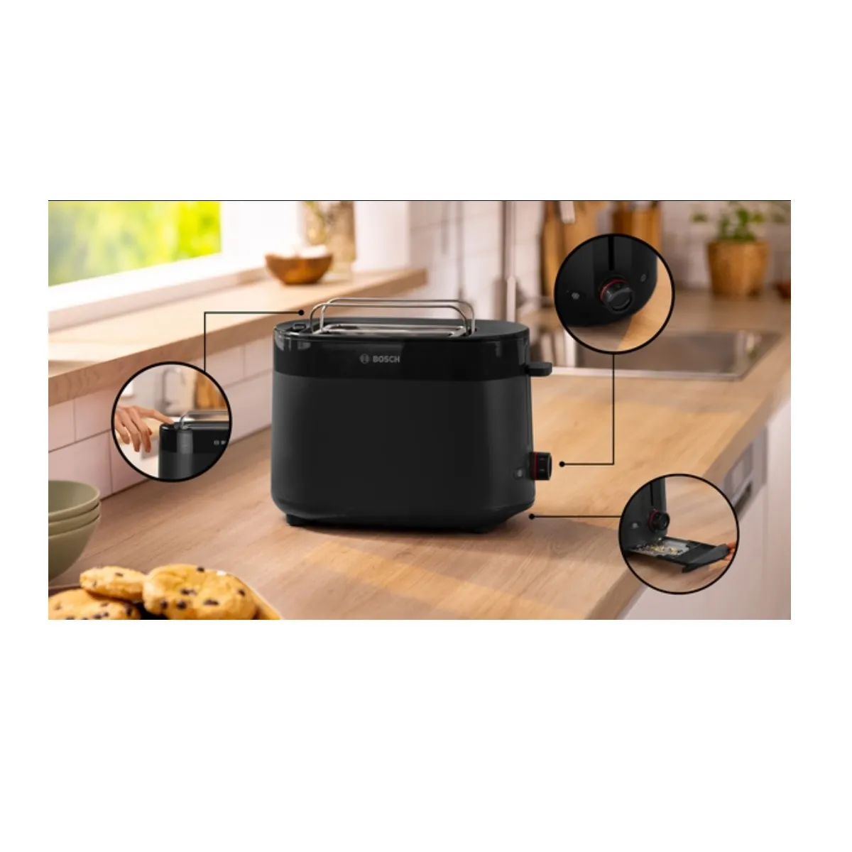 Le HighLift offre une remontée extra-haute pour retirer les petites tranches en toute facilité, limitant les manipulations proches de la chaleur. Le tiroir ramasse-miettes frontal se retire aisément pour un nettoyage rapide. Le réchauffe-viennoiseries pliable accueille pains et croissants, et l'emplacement range-cordon sous la base libère l'espace après usage. L'arrêt automatique de sécurité agit si une tranche reste coincée, pour une utilisation plus sereine jour après jour.