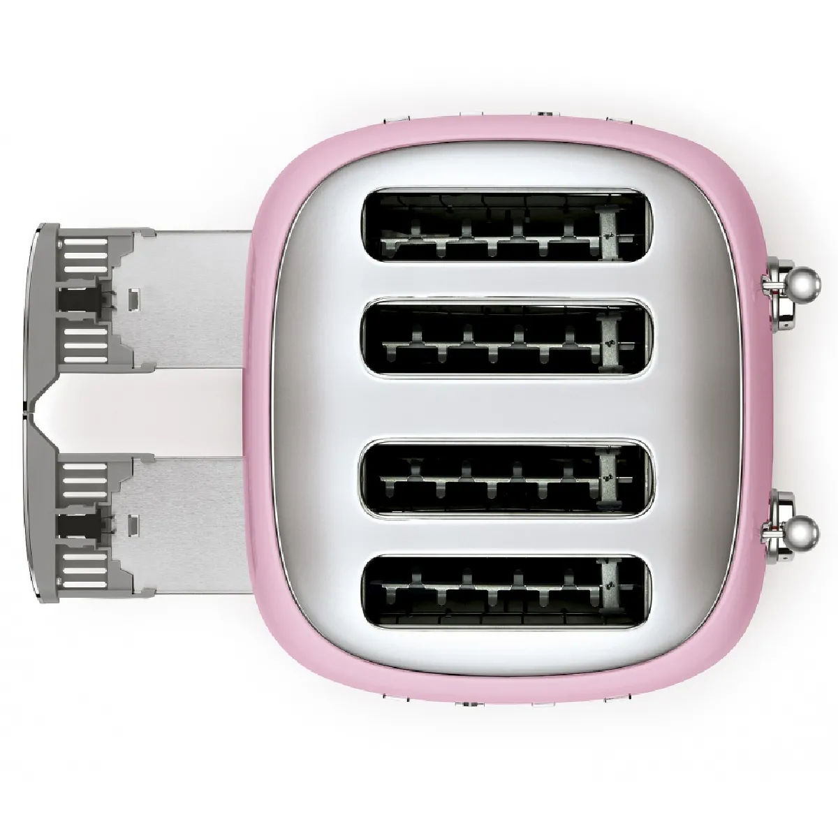Grille-pain 4 fentes style années 50 - 6 niveaux de brunissement - Réchauffage - Décongélation - Fonction bagel - Centrage et éjection automatiques - Tiroirs ramasse-miettes amovibles