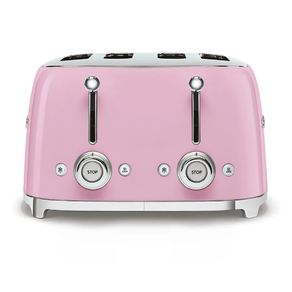 Grille-pain 4 fentes en acier, commandes indépendantes et finitions chromées