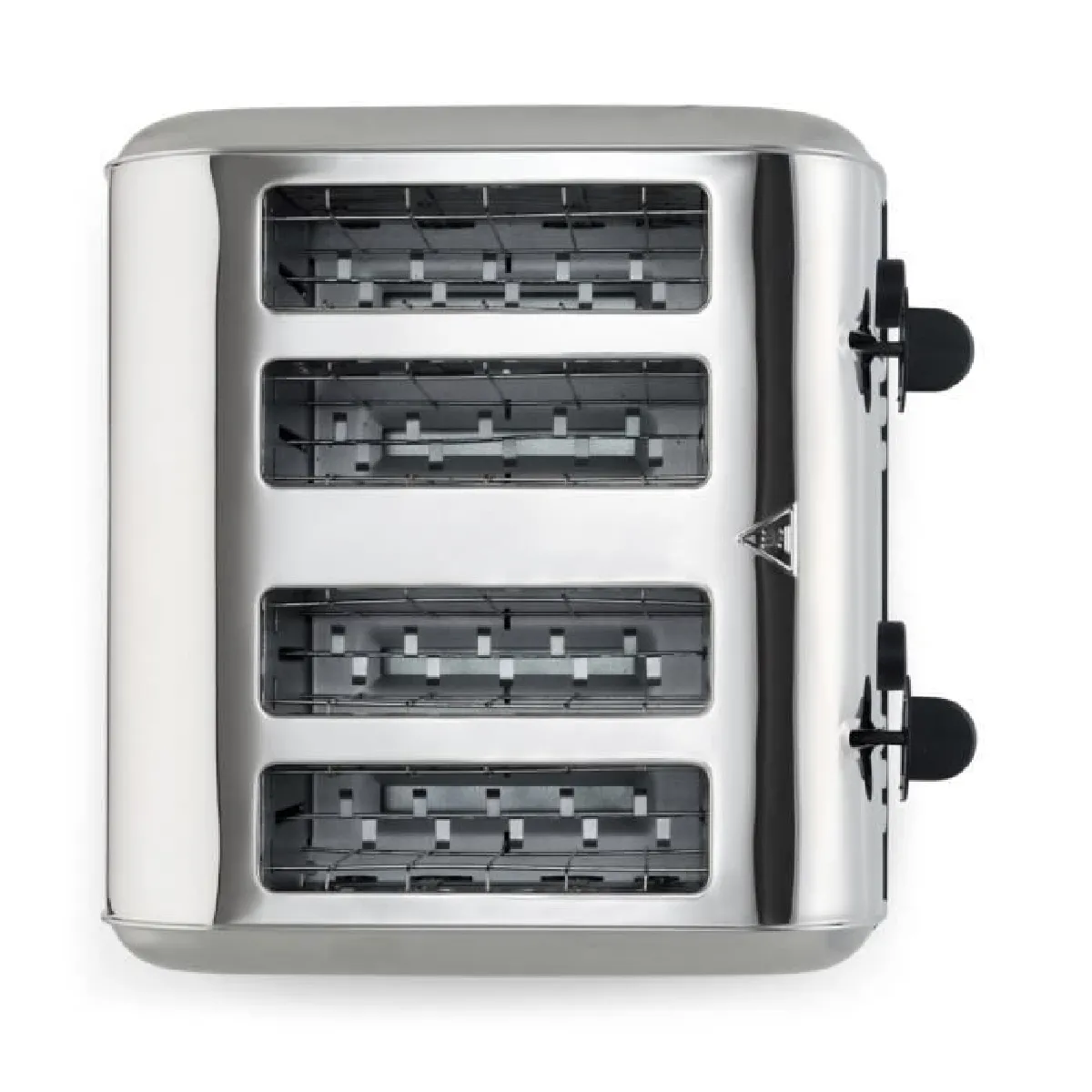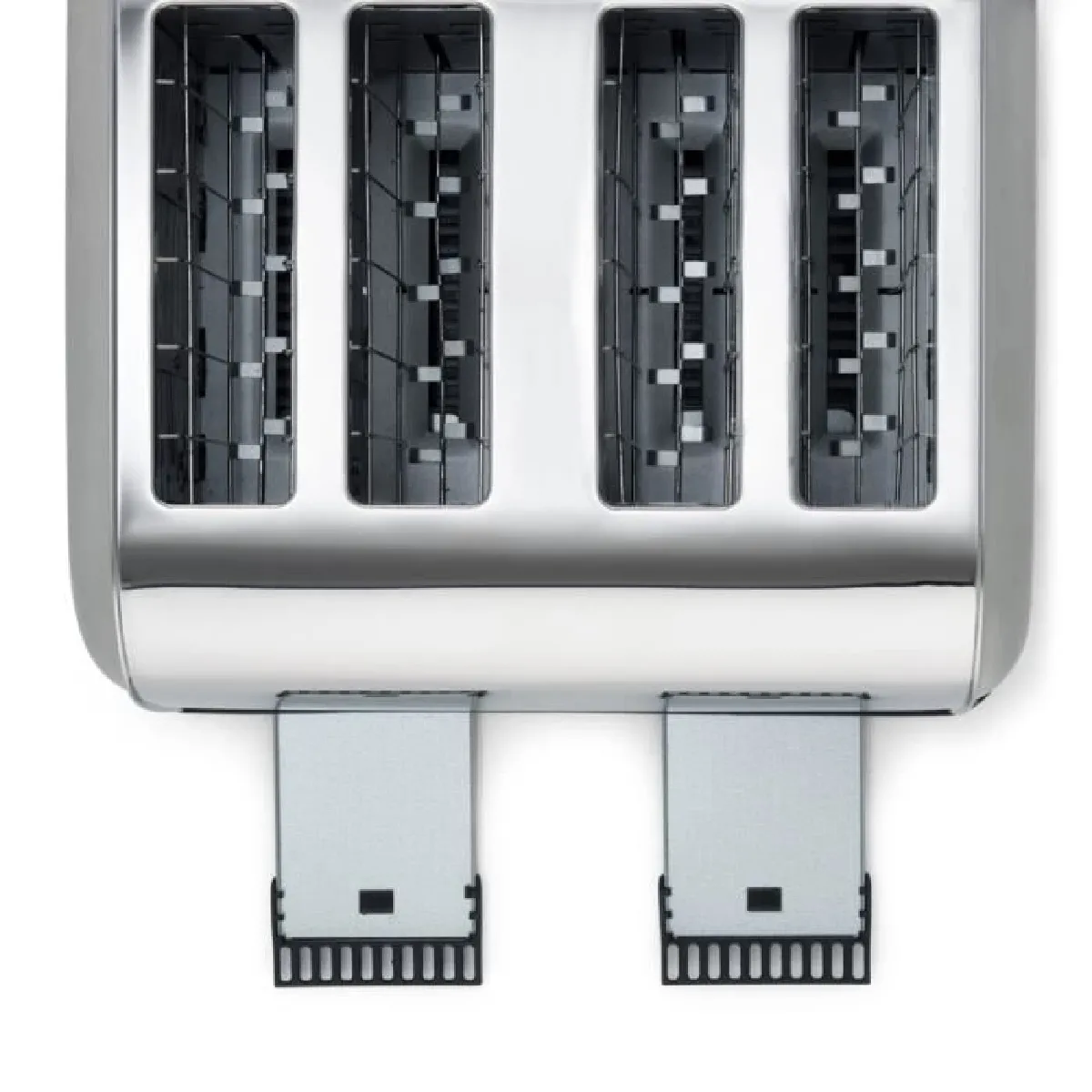 Pensé pour un plan de travail ordonné, le tiroir ramasse-miettes amovible accélère le nettoyage après usage. Le range cordon aide à conserver un poste net et sécurisé entre deux services. La conception en acier inoxydable robuste contribue à la longévité, tandis que les pieds antidérapants stabilisent l'appareil lors de l'insertion et de l'éjection. Avec ses 4 fentes de 3 cm, chaque service peut accueillir plusieurs pains ou bagels, tout en maintenant une chauffe régulière grâce à la puissance disponible.