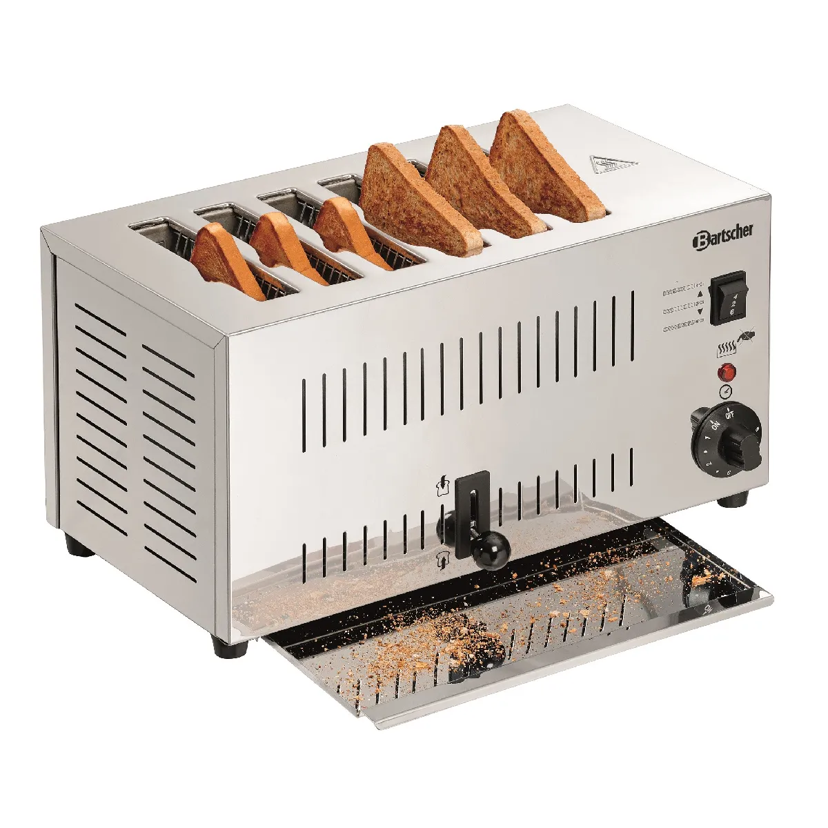 Grille-pain professionnel - 6 tranches - Inox - Minuterie incluse - Tiroir ramasse-miettes