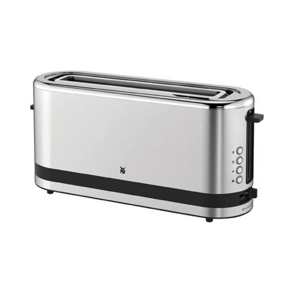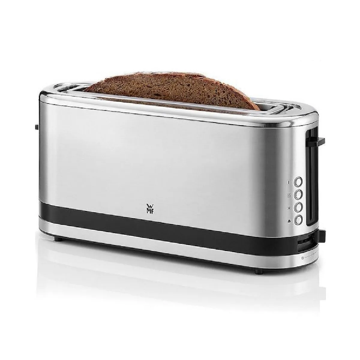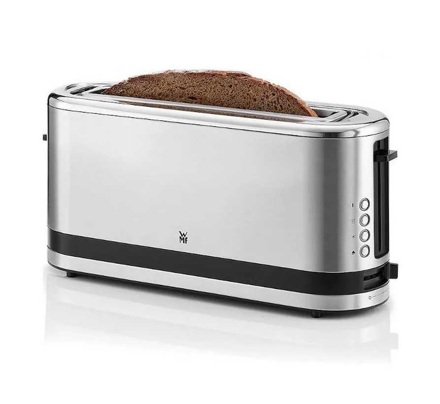 La fente longue accueille deux toasts XXL, une tranche de pain de campagne ou des moitiés de bagel. Le centrage automatique avec brunissage variable répartit la chaleur pour un résultat régulier sur toute la surface. La fonction Bagel grille l'unique face intérieure pour préserver le moelleux côté extérieur, pratique pour les garnitures chaudes. Les boutons rétroéclairés à accès direct permettent d'activer la décongélation, le réchauffage ou l'arrêt instantané avec une bonne visibilité, même tôt le matin.