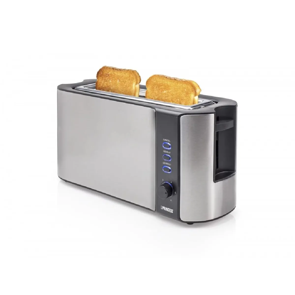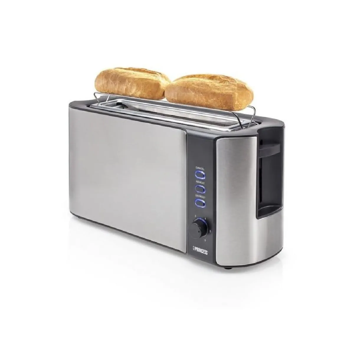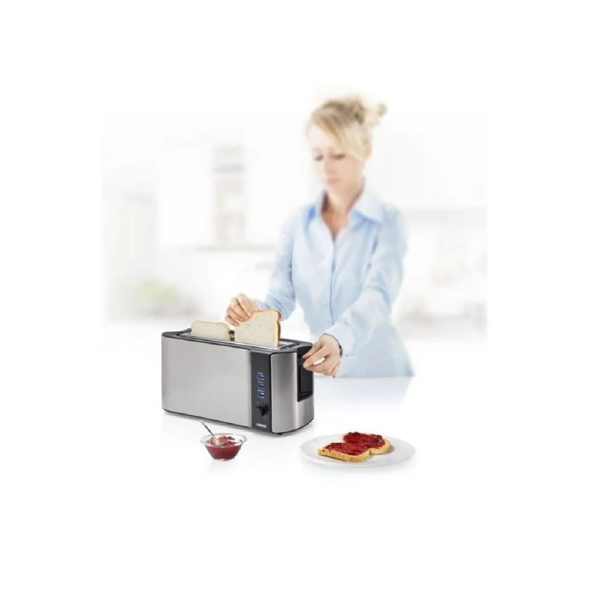 Grille-pain 1 fente - 1000W - Inox - Fonction décongélation et annulation - Tiroir ramasse-miettes