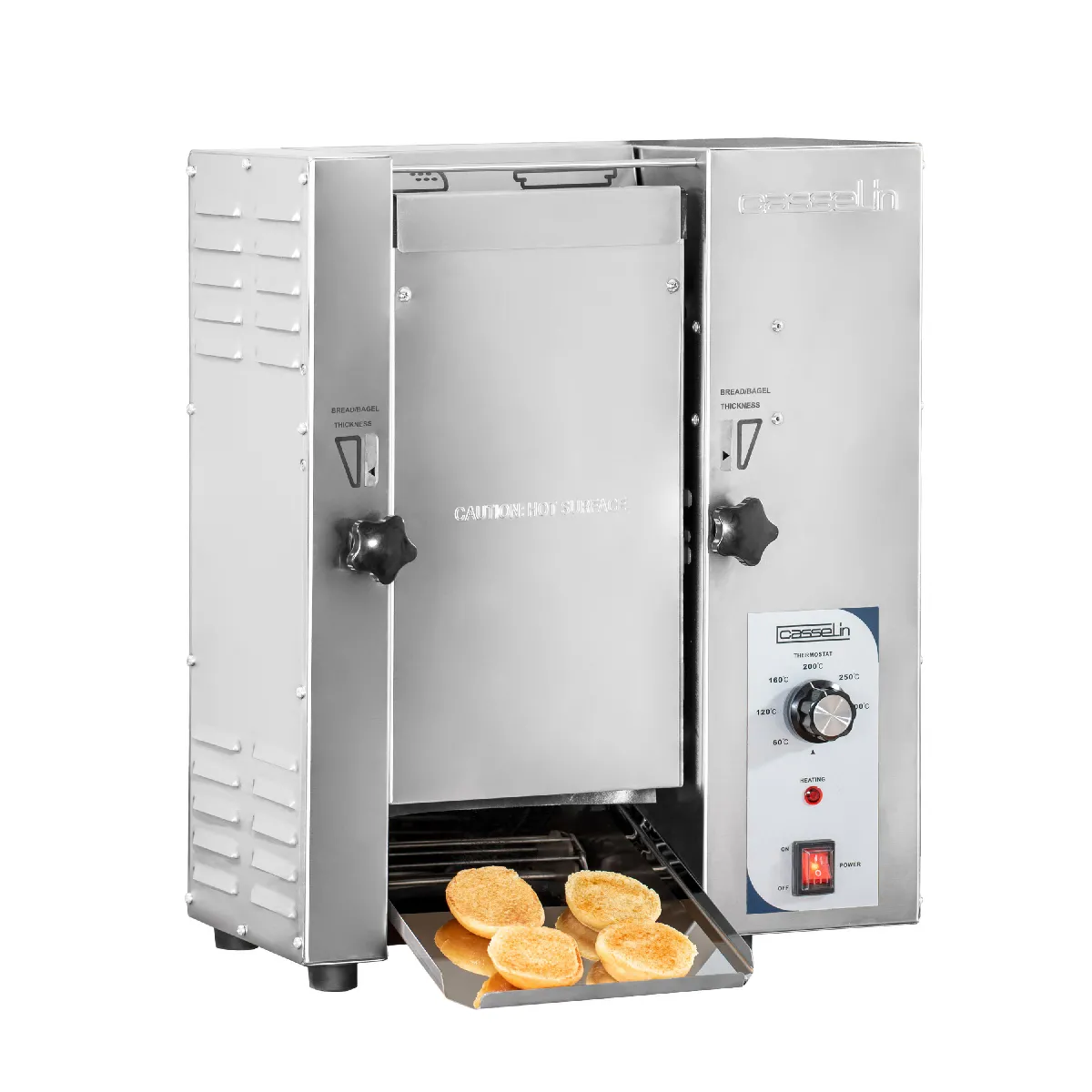 Grille-pain vertical professionnel - Convoyeur automatique - Thermostat - Inox - Bouton marche/arrêt - Réglage d’épaisseur - Toast rapide