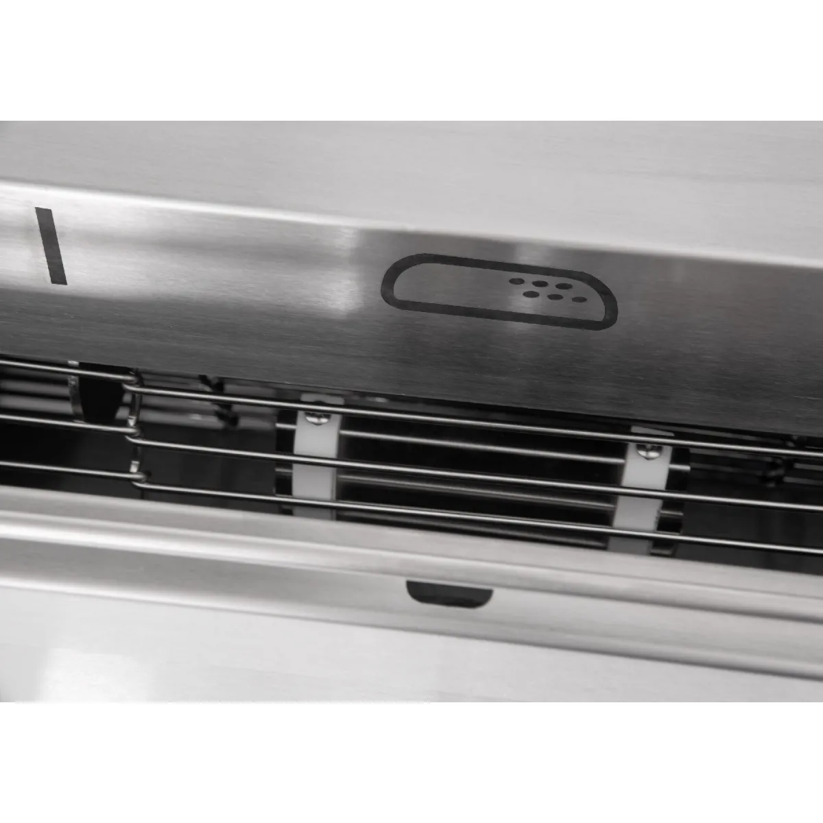 Avec son boîtier en acier inoxydable robuste, l'équipement résiste aux contraintes d'une utilisation intensive. La puissance de 1500 W en 230 V assure une montée en température efficace, utile pour les séries successives. Les dimensions de 460 x 320 x 570 mm et le poids de 17,5 kg offrent une stabilité satisfaisante sur le plan de travail, tout en restant faciles à positionner dans la ligne de préparation. Le bouton ON/OFF centralise la mise en marche et l'arrêt, pour une exploitation simple et sûre au quotidien.