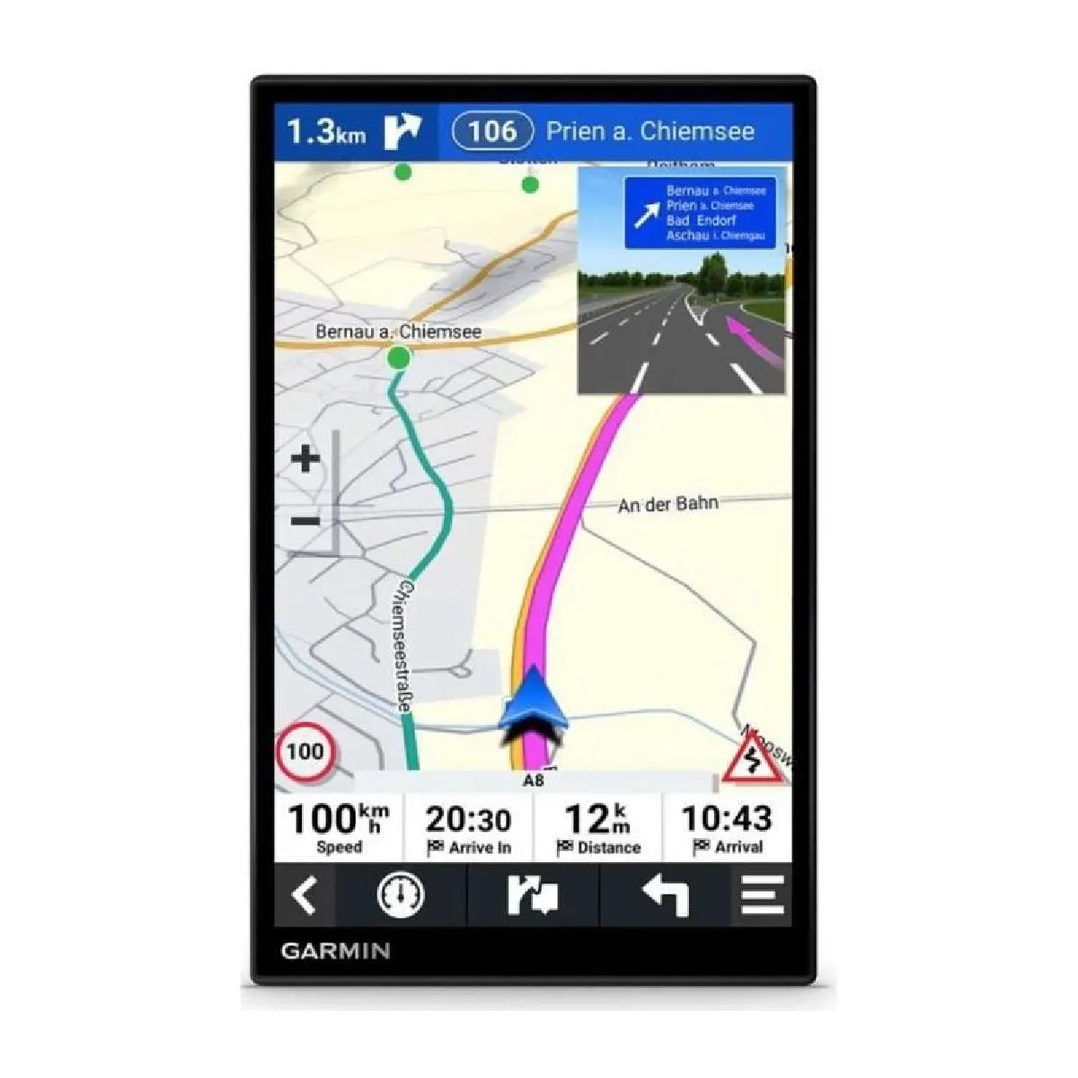 - Connectivité Bluetooth pour des appels mains libres et des services en temps réel via l'application Garmin Drive.