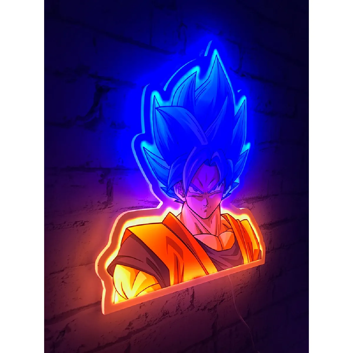 Lampe murale néon - Goku Super Saiyan God - 30 cm - Multicolore - Adaptée pour mur