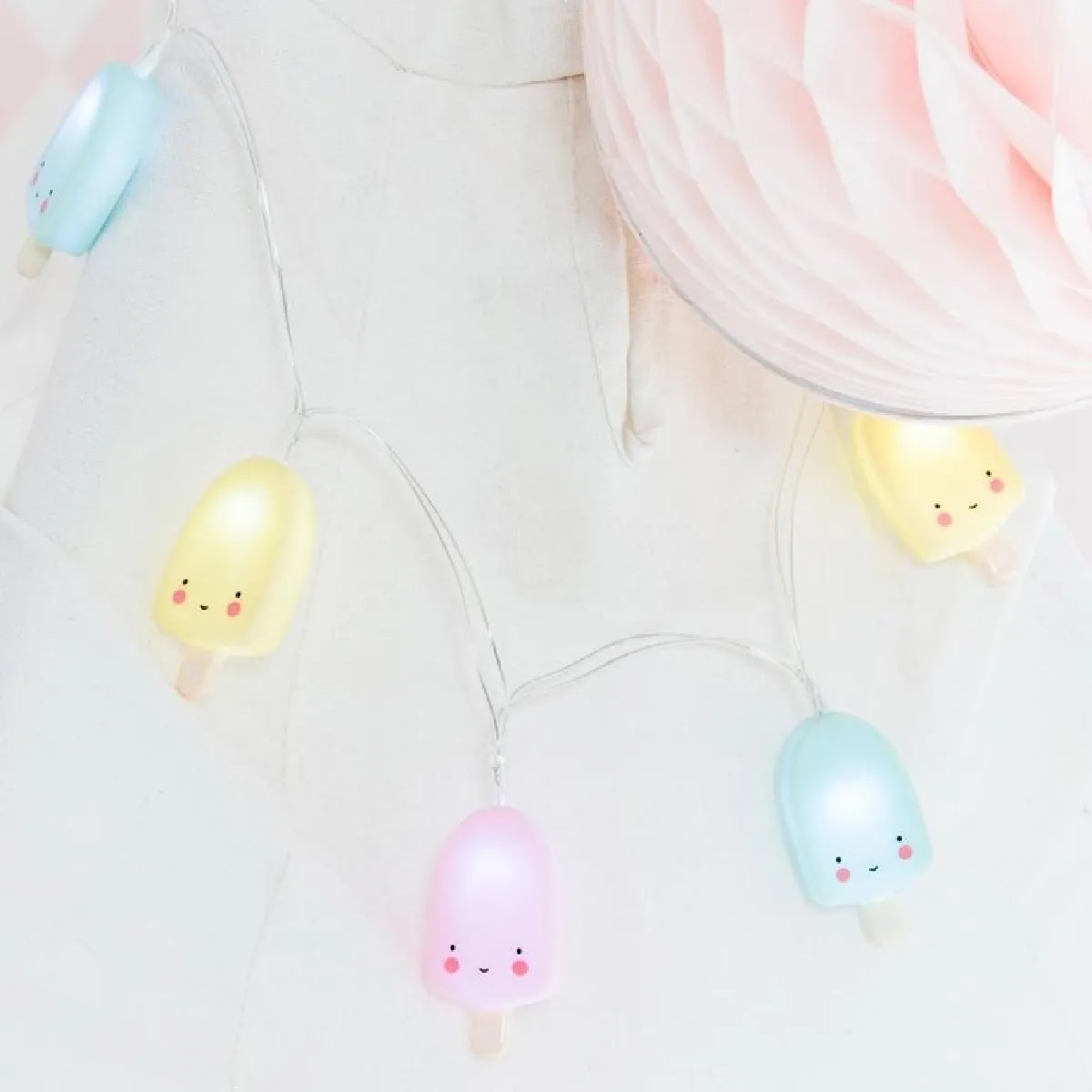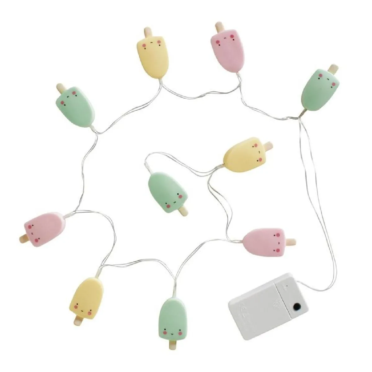 Guirlande lumineuse LED en PVC sans BPA distribuant 10 diffuseurs en forme d'esquimaux equipes de LED integrees.