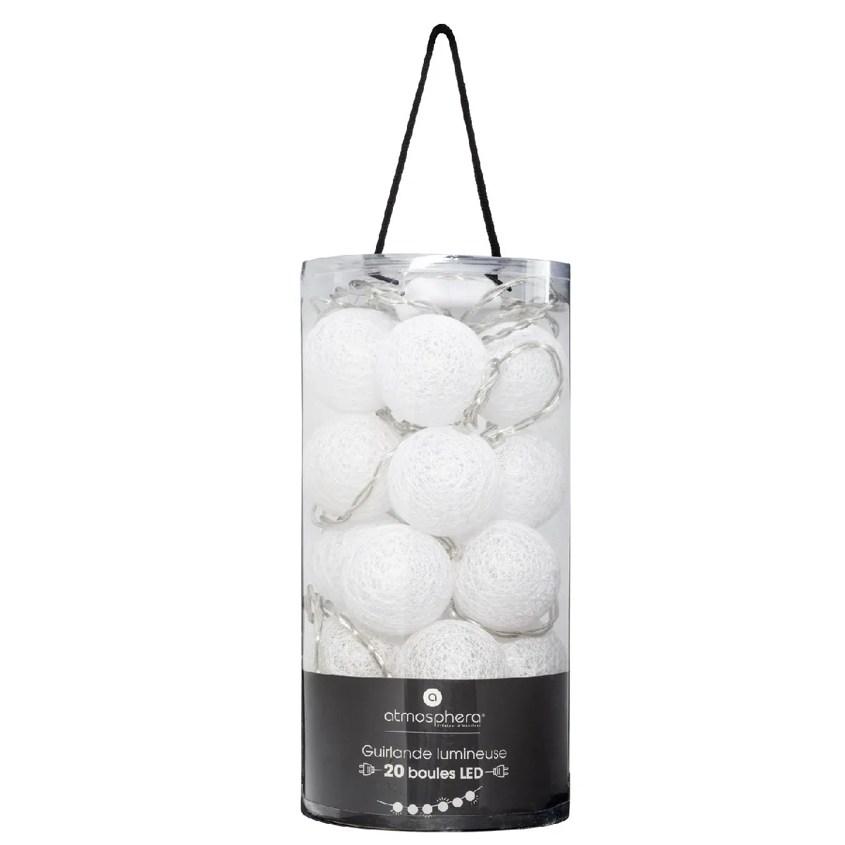 Atmosphera - Guirlande sur secteur LED 20 boules - Blanc - Design