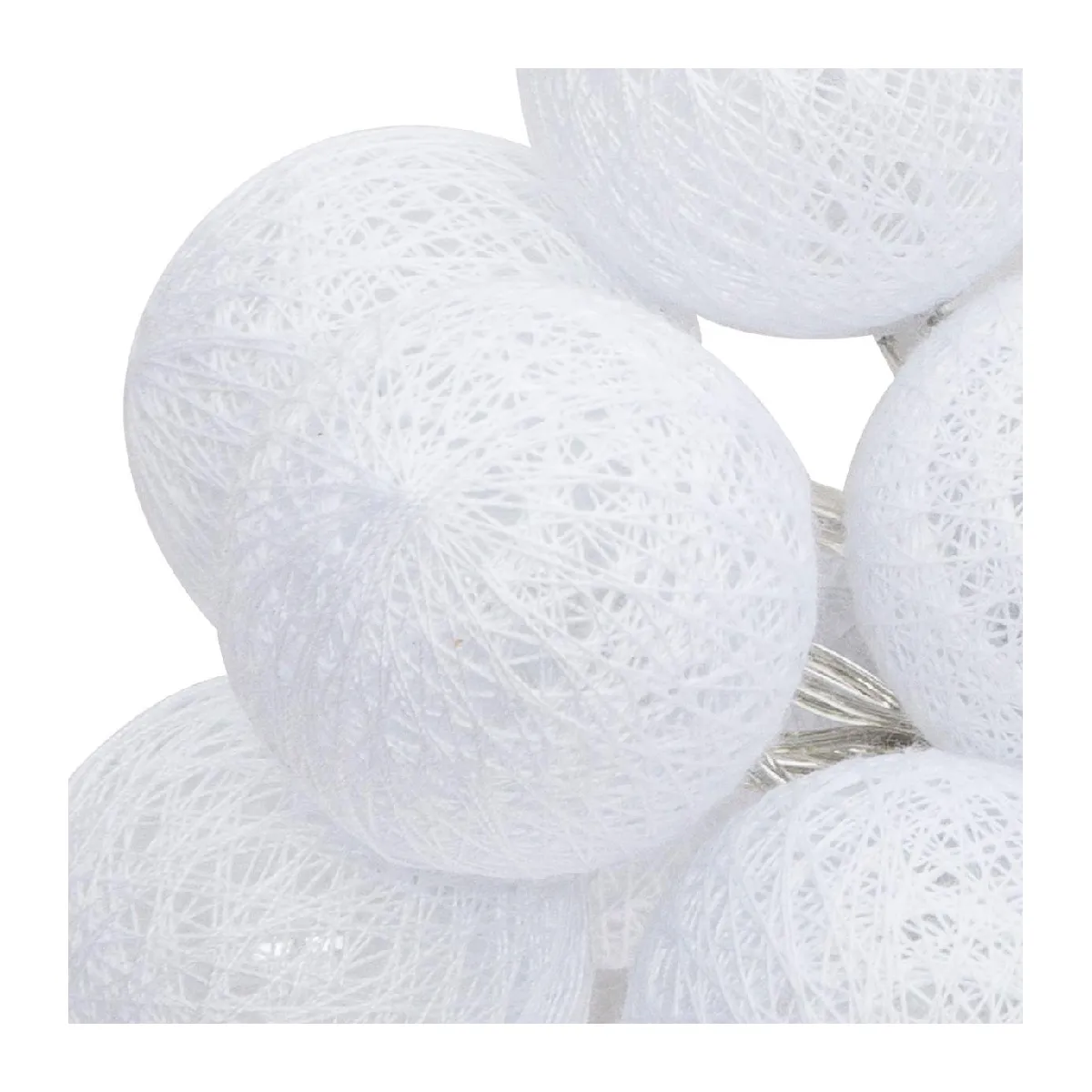 Commentaire vendeur : Votre pièce manque de chaleur ? Cette guirlande lumineuse sera votre atout charme.FICHE TECHNIQUE- Guirlande LED.- Couleur des boules : Blanc.- Détails : 20 boules.- Matière : Coton, Cuivre et PVC.- Alimentation sur secteur.- Couleur LED : Blanc.- Couleur non changeante.CARACTERISTIQUES TECHNIQUES- Dimensions : Diamètre 6 cm x Longueur 435 cm.- Poids : 0,239 kg.