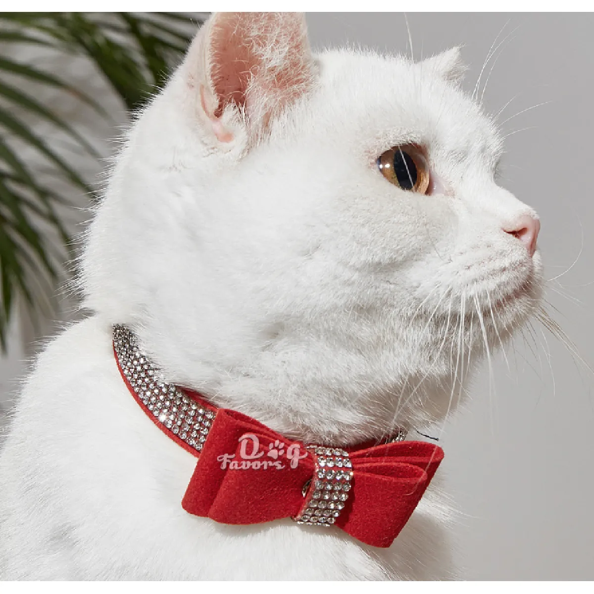 Collier de chien de chien de daim Bowknot en cuir de daim et de laisse de compagnie chiot chihuahua Colliers Chihuahua pour petits chiens de taille moyenne | Collier de chat de chien | Collier de chaton Collarcat (rouge)