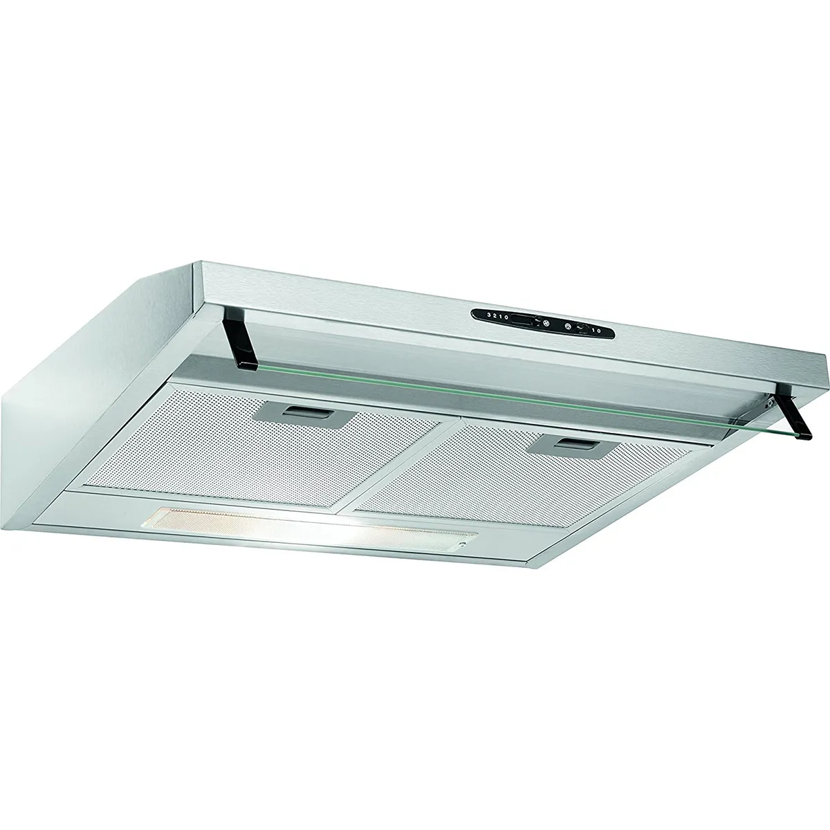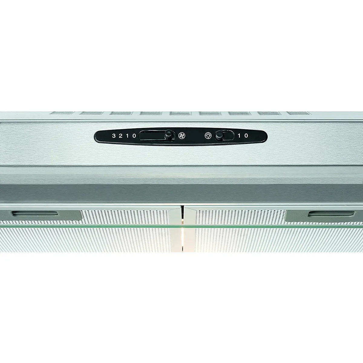 Conçue pour une pose encastrable sous meuble, cette hotte de 13,5 cm de hauteur et 50 cm de profondeur s'intègre dans des caissons de 60 cm. Le matériel de montage et le tuyau vertical avec ailette de retenue sont inclus pour faciliter l'installation. La finition inox s'accorde avec de nombreux électroménagers, tandis que la structure compacte optimise l'espace de rangement supérieur. L'alimentation 220240 V / 50 Hz et la puissance de 105 W conviennent à une installation domestique standard.