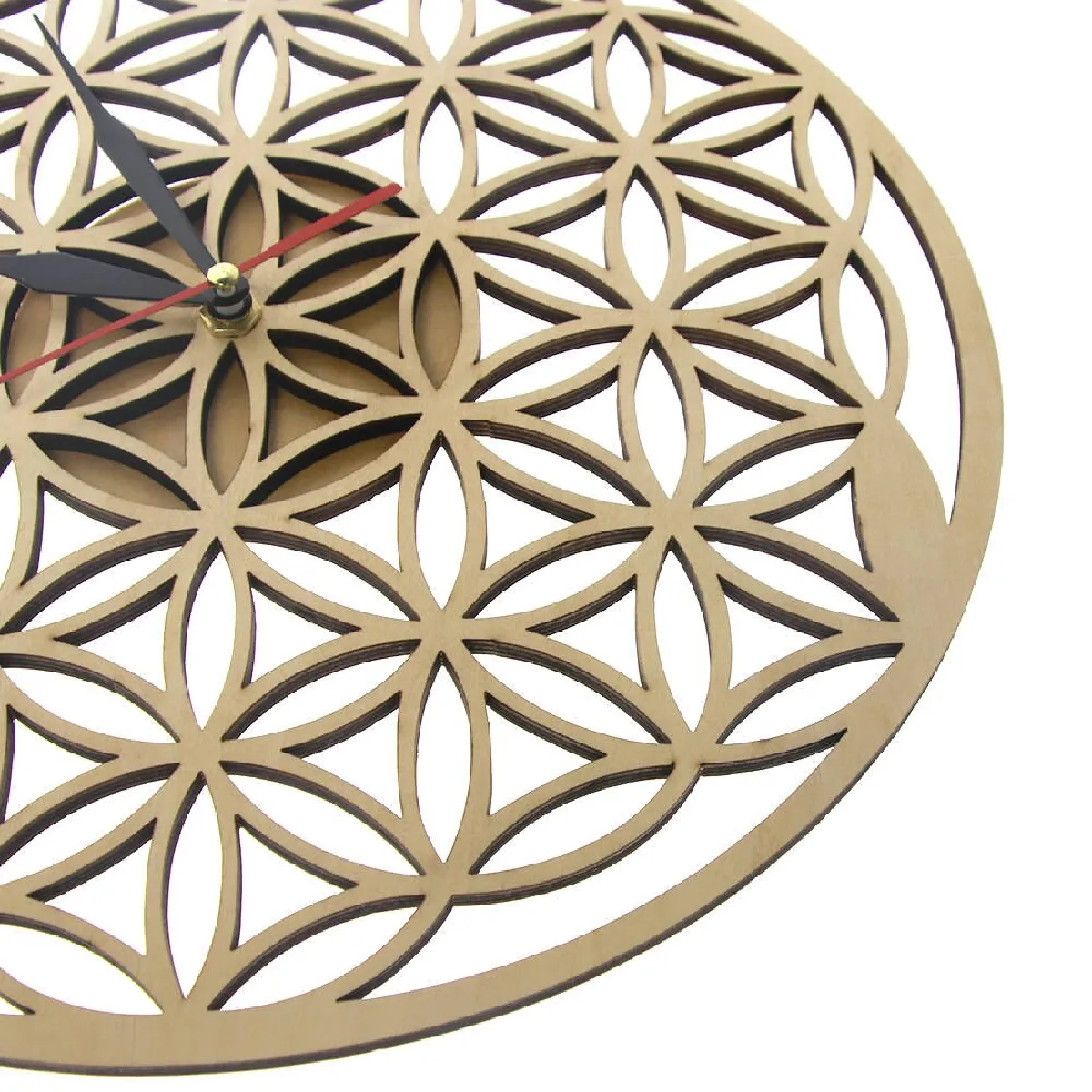 Fleur de vie Anneaux Intersect Anneaux géométriques Horloge murale en bois Géométrie sacrée Géométrie Laser Horloge Montre Ménage Cadeau Cadeau Cadeau Décor | Horloges murales