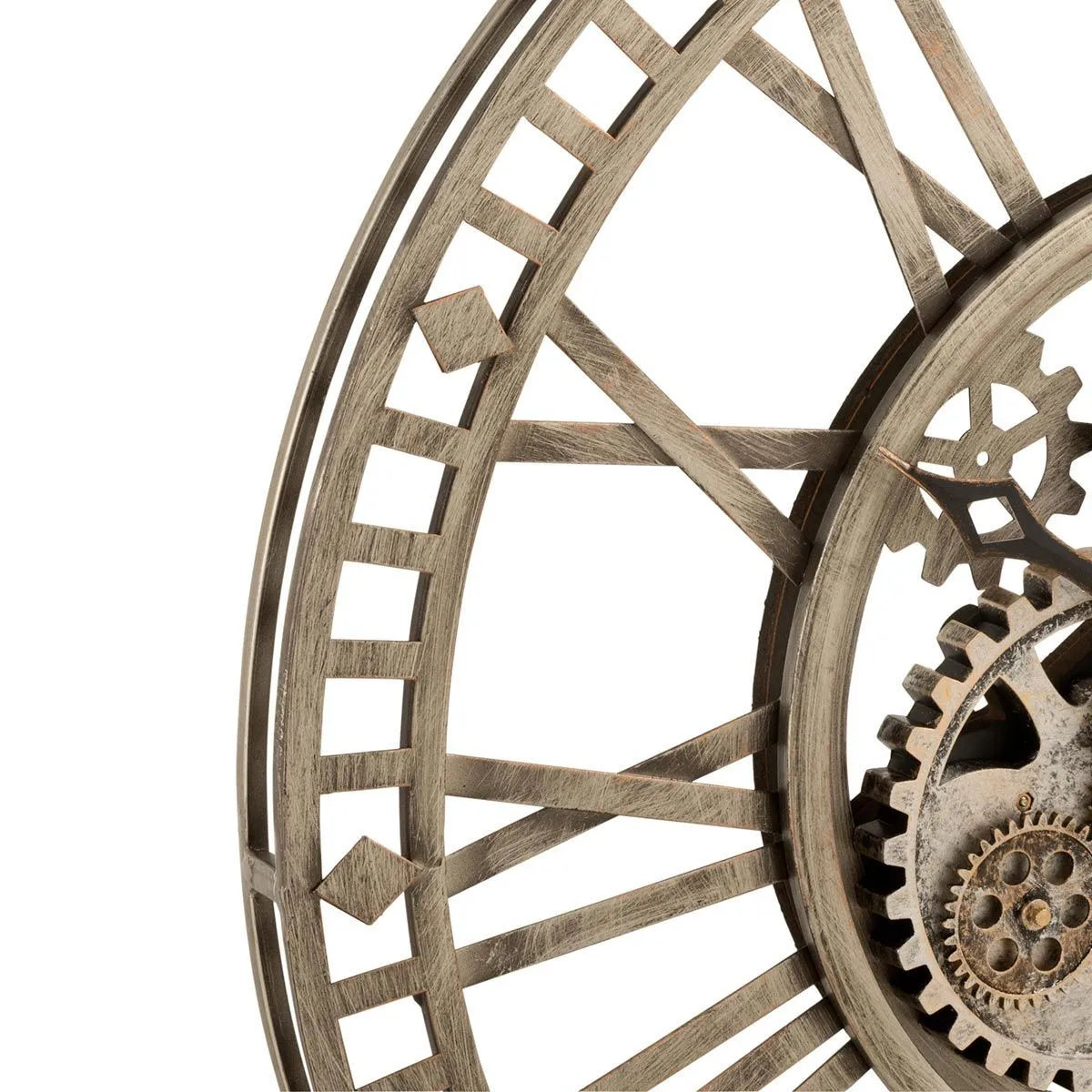 Commentaire vendeur : Informations Techniques : Dimensions : L. 60 x l. 60 x H. 7 cm Matières : Métal & Verre Spécificités : Tendance & Pratique Horloge Murale Forme Ronde Chiffres Romains Mécanisme Apparent Style Rétro & Vintage Poids : 2,66 kg Couleur : Gris