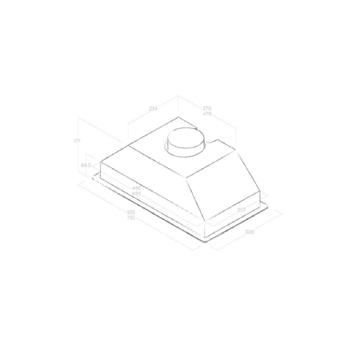 Avec sa largeur de 60 cm et sa profondeur d'encastrement de 25,7 cm, l'appareil s'intègre dans les caissons standards. La hauteur d'encastrement de 17,7 cm facilite l'installation dans un espace réduit, tout en laissant place au conduit d'évacuation Ø 120 mm. La finition blanche en métal s'harmonise avec des façades claires et des cuisines épurées, pour une ligne continue une fois la hotte escamotée.
