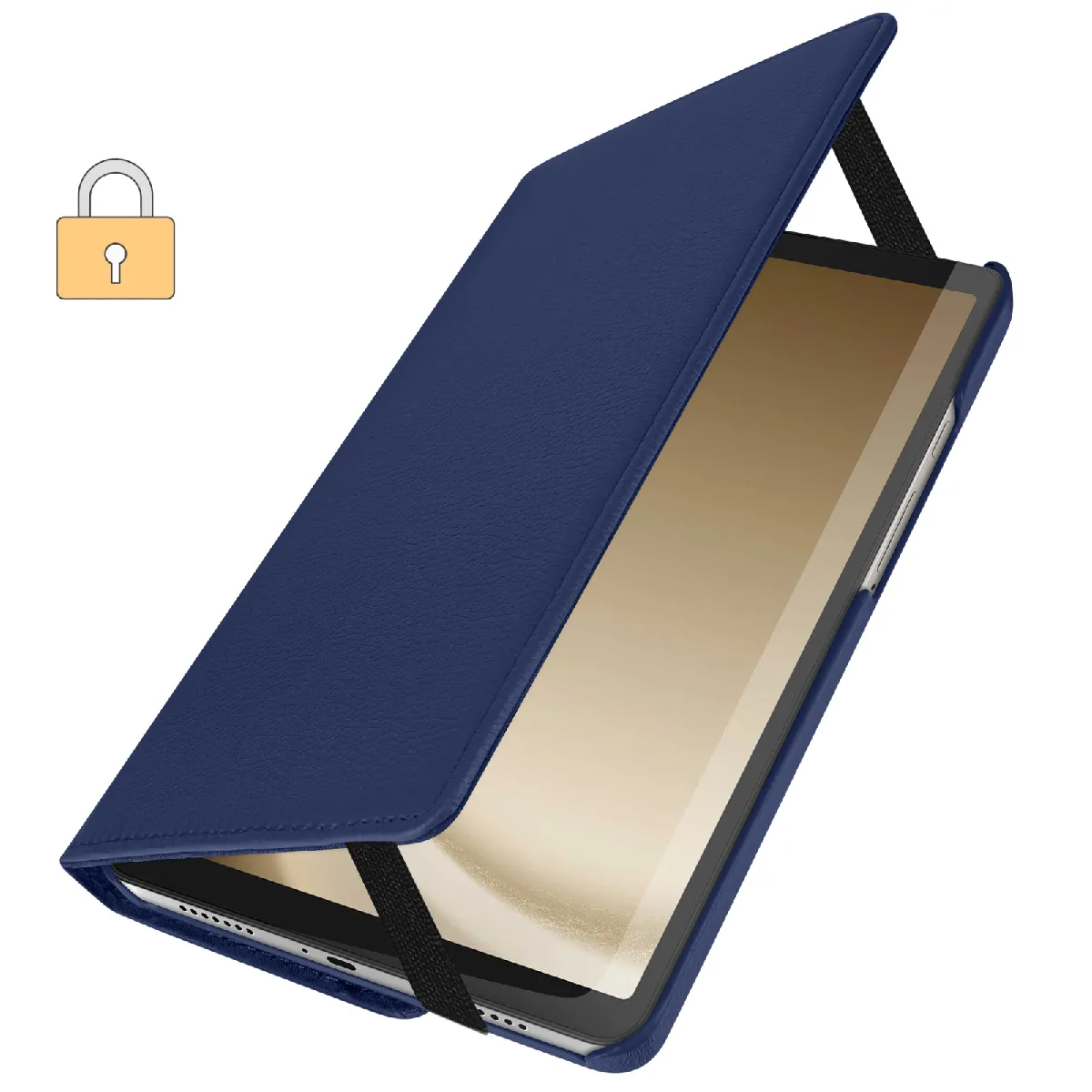 Étui en simili cuir Bleu nuit avec clapet rotatif, spécifiquement conçu pour Samsung Galaxy Tab A9 et Tab A11