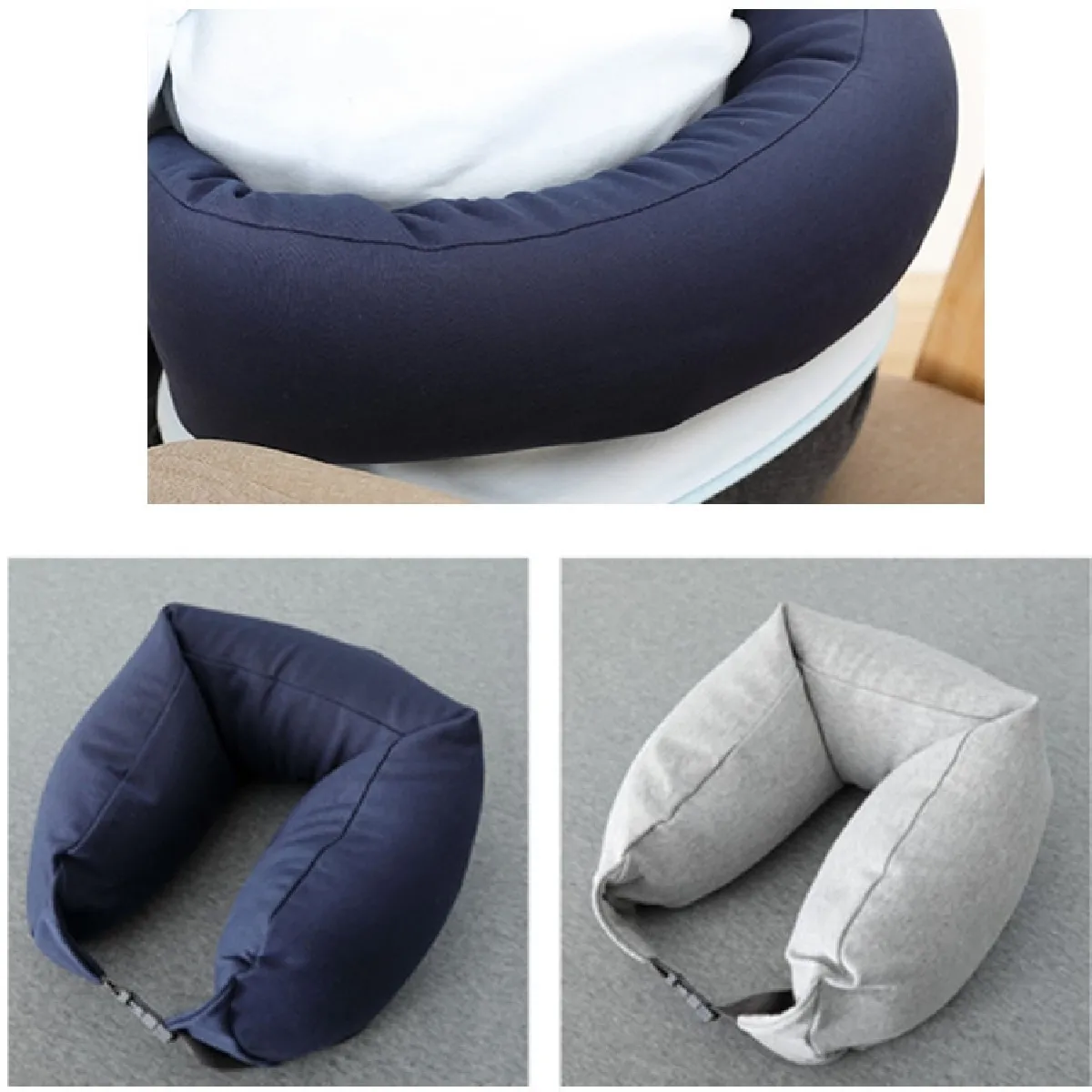 Oreiller de voyage en forme de U - Tissu coton - Particules matérielles - 360 degrés de protection