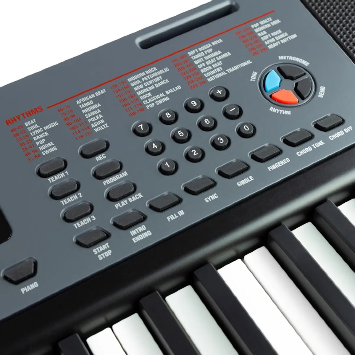 Avec 300 instruments, 300 rythmes et 40 morceaux de démonstration, le RockJam 461 est un kit polyvalent prêt à convenir tous les styles et genres.