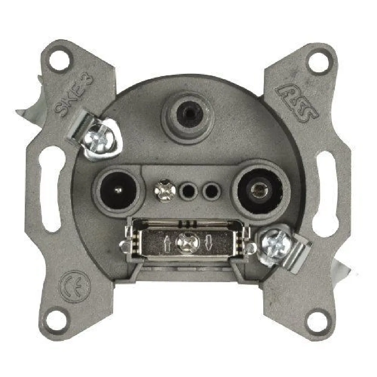 Prise TV / radio / satellite encastrée - 1 module - IP20 - Plaque aluminium - Ports TV, radio et SAT